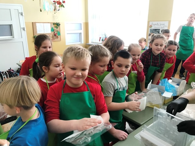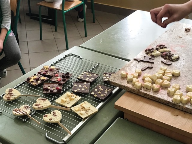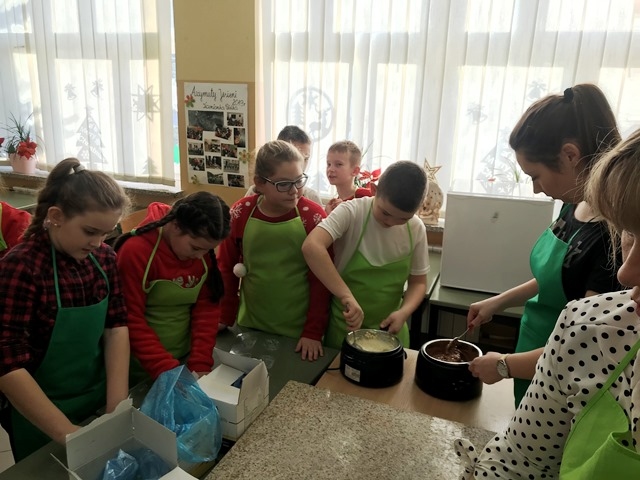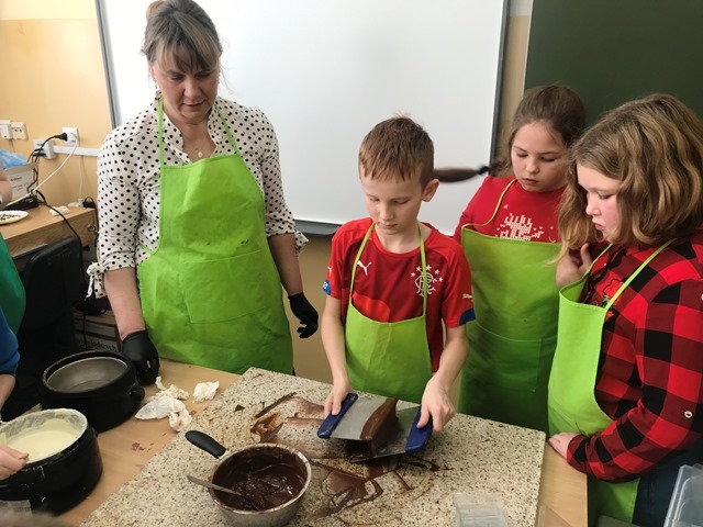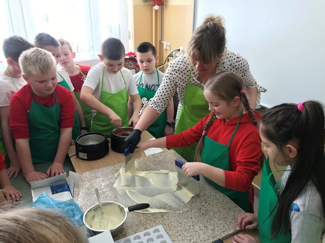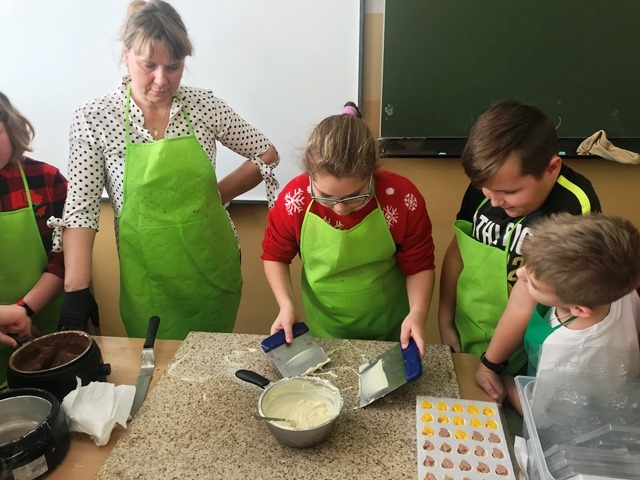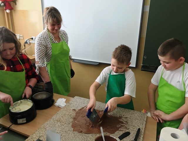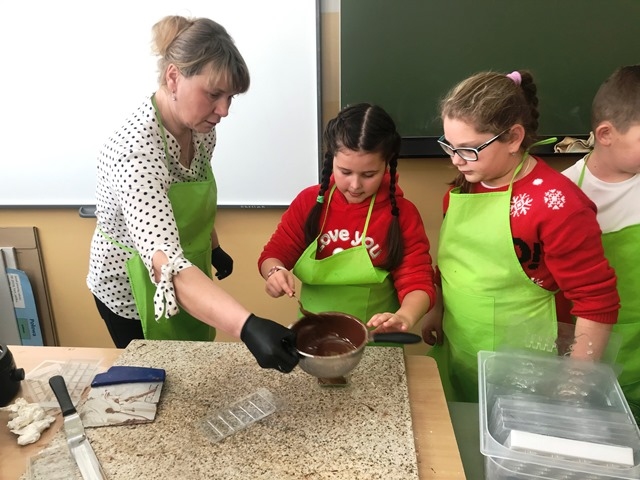 12 grudnia 2019 r. klasa III, w ramach prezentu od Św. Mikołaja brała udział w „Warsztatach czekoladowych – robienie pralin i czekoladek”. W trakcie warsztatów dzieci samodzielnie roztapiały kawałki czekolady białej, mlecznej i gorzkiej. Temperowały czekoladę, z której w wybranych foremkach tworzyły własne tabliczki, ozdabiając je wybranymi kandyzowanymi owocami. Były to wesołe i słodkie warsztaty, które dzieci na długo zapamiętają.