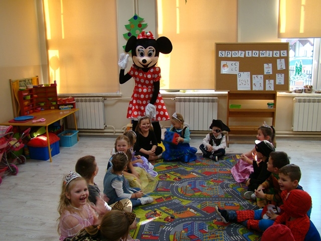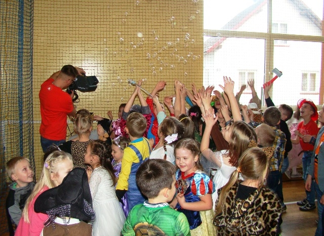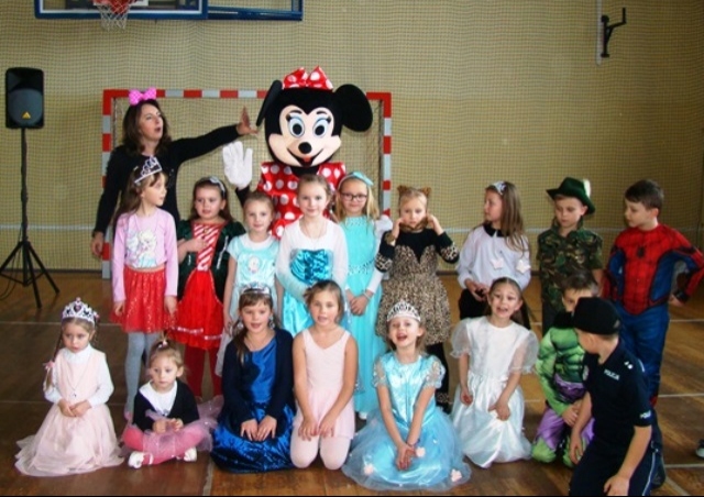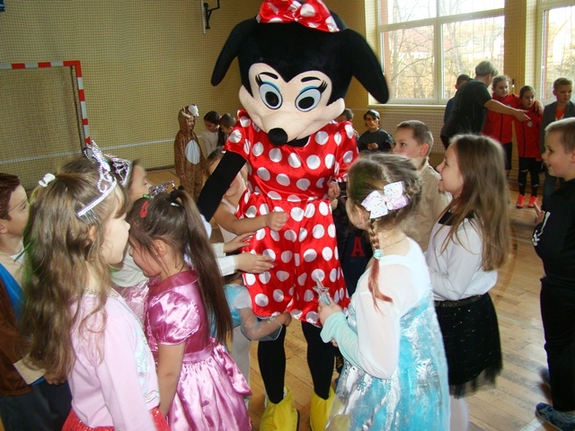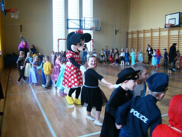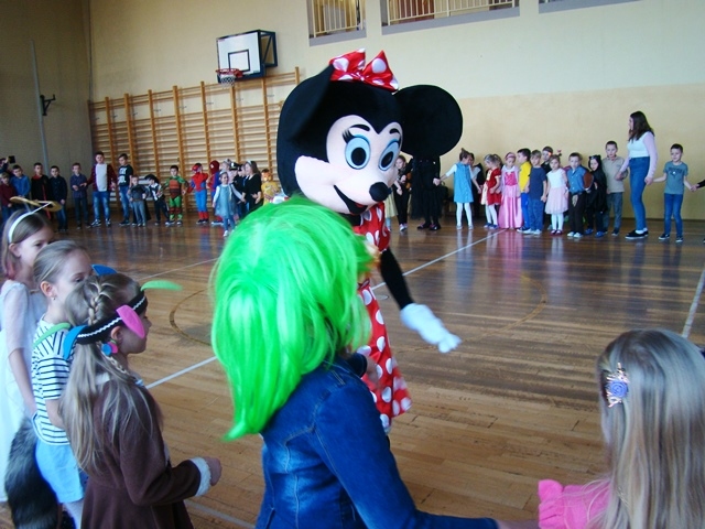 We wtorek 14 stycznia w naszej szkole odbył się Bal Karnawałowy dla klas 0 -III. Już od wejścia można było wyczuć niecodzienny nastrój. Dzieci, przebrane w barwne i pomysłowe stroje, bawiły się przy dźwiękach różnorodnej muzyki granej przez Pana Dariusza Tokarczyka. Główną atrakcją całego balu była wizyta Myszki Minnie. Animator urozmaicał zabawy dymem i puszczał bańki mydlane.