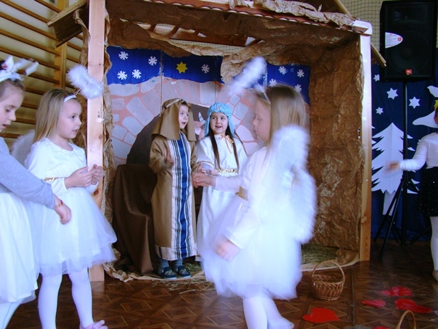 Licznie przybyli goście zasiedli przy przygotowanych dla nich stołach i z niecierpliwością czekali na rozpoczęcie występu swoich wnucząt. Na twarzach dzieci widać było ogromną radość oraz skupienie. Dzieci zaprezentowały program artystyczny, a następnie wręczyły własnoręcznie pomalowane i ozdobione aniołki z masy gipsowej. Wszyscy z dumą patrzyli na swoje wnuczęta, które włożyły wiele wysiłku w to, aby jak najlepiej wyrazić swoją miłość i szacunek.