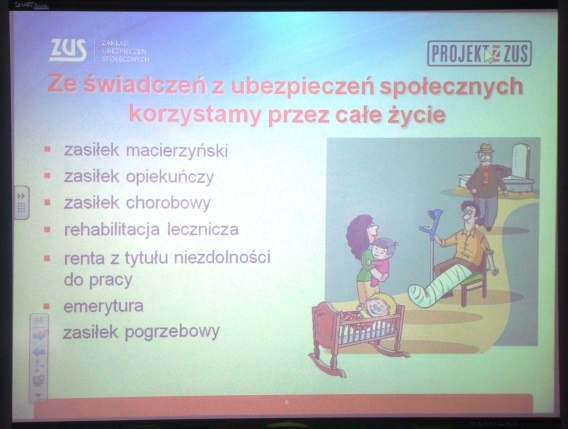 W ramach Projektu z ZUS, w którym biorą udział uczniowie klas VII i VIII, dnia 11 lutego odbyło się spotkanie z panem Tomaszem Dydą, pracownikiem Oddziału Zakładu Ubezpieczeń Społecznych z Nowego Sącza.