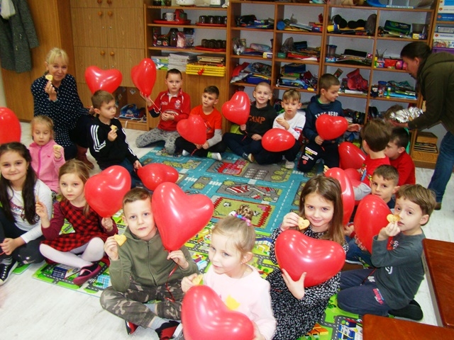 Walentynki to doskonała okazja do okazywania sobie uczuć. W oddziałach przedszkolnych bawiliśmy się walentynkowo - sale przystrojone były serduszkami, dzieci przygotowały niespodzianki swoim kolegom czy koleżankom w grupie. Poznały tradycję walentynek i kim był Święty Walenty. Serca towarzyszyły nam przez cały dzień – wyklejaliśmy je kulkami z bibuły szukaliśmy swojej połowy serca. Były konkursy, zagadki, oraz zabawa ruchowa przy muzyce. Rodzice przygotowali nam ciasteczka w kształcie serc, każde dziecko dostało czerwony balonik. Najważniejsze, że nie zabrakło uśmiechu, bo przecież o to najbardziej nam chodziło. Wszystkim ten dzień bardzo się podobał - szkoda, że tylko raz w roku...