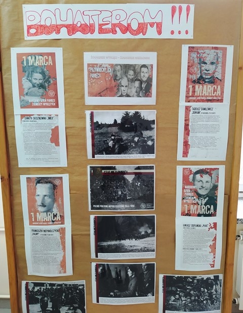 Od niedawna w polskim kalendarzu obchodzimy 1 marca Narodowy Dzień Pamięci Żołnierzy Wyklętych. Święto poświęcone żołnierzom wyklętym, lecz niezłomnym. Tym, którzy nie poddali się i do końca walczyli o wolną Polskę. Wielu z nich, młodych ludzi, przypłaciło tę nierówną walkę życiem. W naszej szkole również nie mogło zabraknąć z tej okazji tematycznej gazetki o losach m.in. Rotmistrza Witolda Pileckiego, Danuty Siedzikówny ps. Inka, Gen. Augusta Emila Fieldorfa, ps. Nil czy Płk. Hieronima Dekutowskiego ps. Zapora.