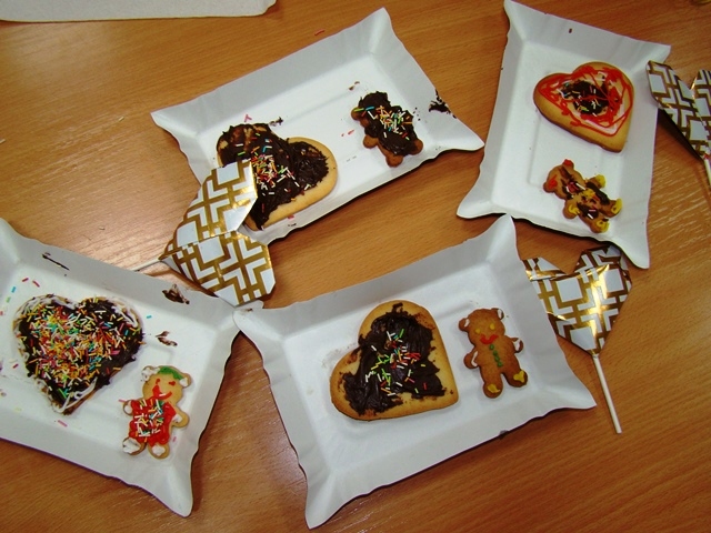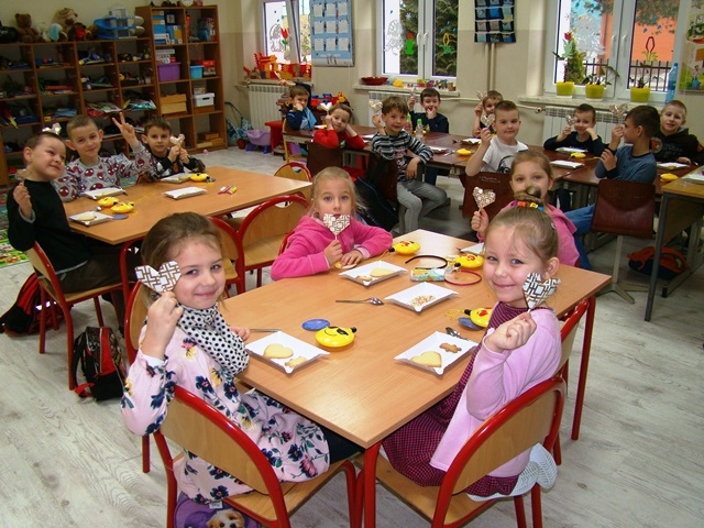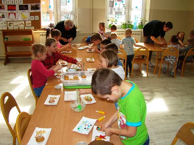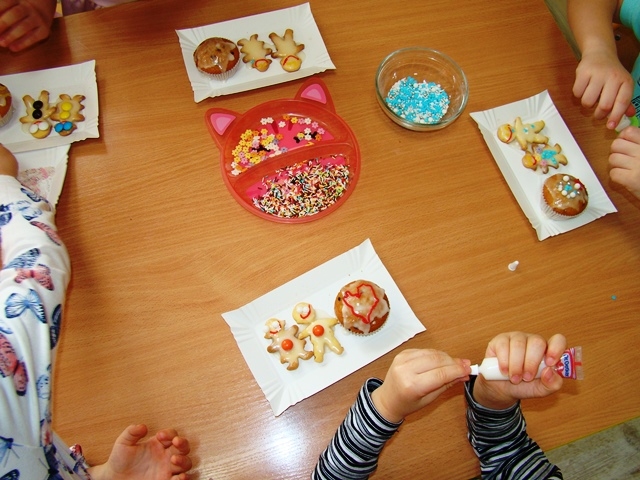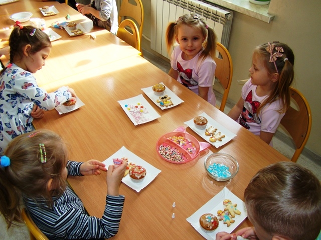 Młode damy zostały obdarowane jak tradycja każe - kwiatami, wszyscy otrzymali drobne upominki. Każde dziecko miało swój udział w przygotowaniu słodkości na tą okazję. W obydwu grupach odbyło się własnoręczne dekorowanie ciasteczek i babeczek, co sprawiło wszystkim dzieciakom mnóstwo radości - bo nie ma takiego przedszkolaka, który nie lubi kolorowych cukiereczków i pysznego kremu czekoladowego!