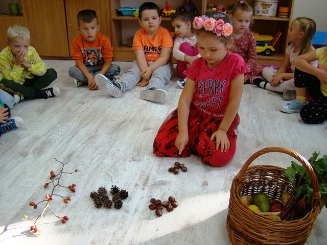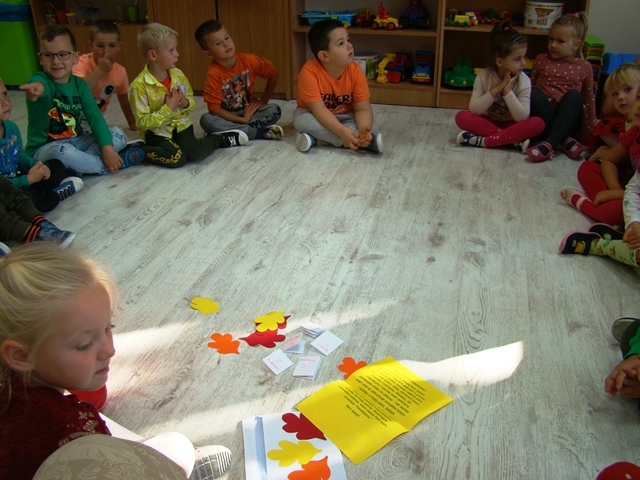 22 września dzieci z oddziału przedszkolnego 0-1 powitały Pierwszy Dzień Jesieni. Tego dnia „królowały kolory": brązowy, pomarańczowy, żółty i czerwony. Organizowane były zabawy dydaktyczne, zagadki słowne i rebusy o tematyce jesiennej, poprzez które dzieci przyswoiły sobie wiadomości o rozpoczynającej się właśnie porze roku. Dzieci z listkami w ręku wirowały wkoło przy piosence „Idzie Jesień poprzez świat”. Wykonały kolorowe drzewa jesienne.