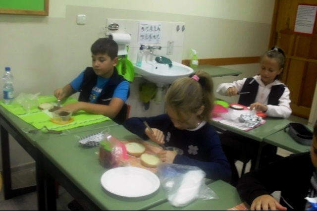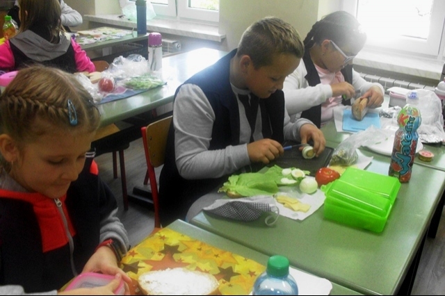 Klasa trzecia na lekcjach środowiska poznawała rośliny zbożowe rosnące w Polsce. Omawialiśmy znaczenie zbóż dla ludzi jak i zwierząt w szczególności ziarno, które wykorzystywane jest przez człowieka w postaci mąki, kaszy i płatków oraz jako pasza dla zwierząt. Następnie utrwalaliśmy wiadomości dotyczące drogi ziarna aż do momentu powstania - czyli wypieku - chleba. Podsumowaniem zajęć było omówienie różnych gatunków pieczywa - od białego - pszennego do ciemnego - razowego lub ziarnistego. Ponadto przypominaliśmy , że cenniejsze dla naszego organizmu jest spożywanie ciemnego pieczywa. Na zakończenie sami wykonaliśmy pyszne - zdrowe kanapki na drugie śniadanie. Samo zdrowie!