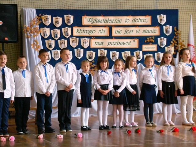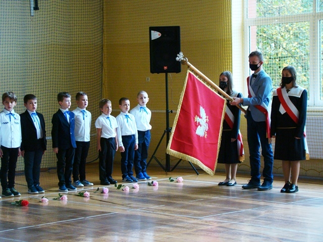 Pomimo braku szerokiej publiczności dzieci z klasy pierwszej - pod kierunkiem wychowawczyni p. Barbary Stelmach - zaprezentowały piękny program artystyczny i wspaniale zatańczyły poloneza. Oprawę muzyczną ślubowania zapewnił p. Krzysztof Smyda ze szkolnym zespołem wokalnym, a prowadzącymi całość wydarzenia były przedstawicielki Samorządu Uczniowskiego: Alicja Nieć z klasy VIII oraz Marlena Radomska z klasy VIIa.
