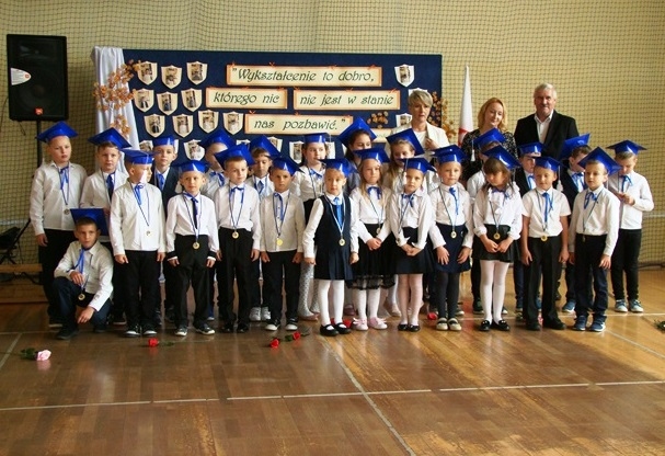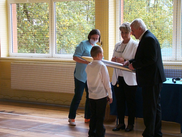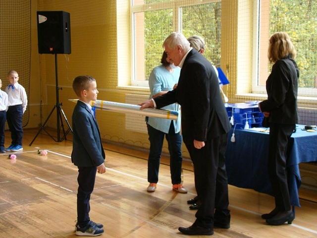 Kulminacyjnym punktem uroczystości było jak zwykle indywidualne pasowanie na ucznia dokonane przez Pana Dyrektora. Każdy pierwszak był bardzo przejęty i z mocno bijącym serduszkiem odbierał okolicznościowy medal na pamiątkę tego wydarzenia. A potem były jeszcze prezenty i pamiątkowe zdjęcia. To był wspaniały dzień!