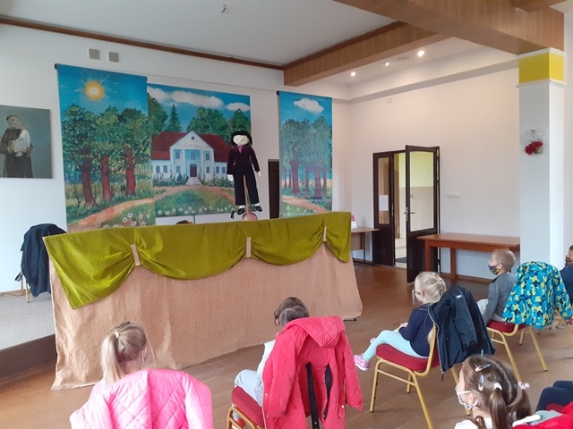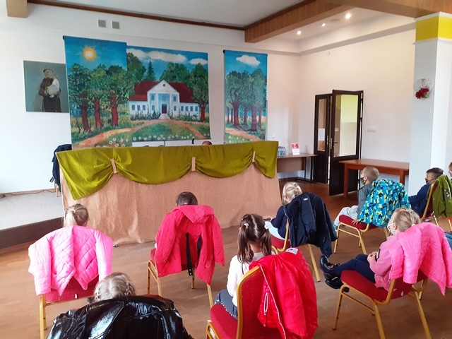 15.10.2020 roku dzieci z oddziałów przedszkolnych 0-1 i 0-2 oraz klasy I-III zachowując wszelkie środki bezpieczeństwa i przy zachowaniu najwyższych standardów sanitarnych wybrały się na przedstawienie teatralne pt. „Gucio zaczarowany” w wykonaniu Teatru Lalek „Bajka”, które odbyło się w Gminnej Bibliotece Publicznej w Przysietnicy.