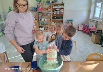 W czwartek 11 października dzieci z oddziału 0-1 dowiedziały się w jaki sposób można zachować „smak lata” w słoikach. W pogadance omówiliśmy jak robi się przetwory na zimę, np. kompoty, dżemy, powidła. Największą radość sprawiło dzieciom jednak samo d