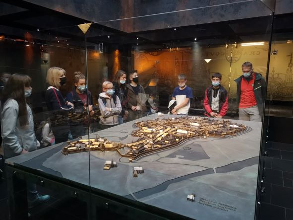 Odbyliśmy też fascynującą podróż w czasie zwiedzając muzeum „Podziemia Rynku”. Zeszliśmy pod bruk Rynku na głębokość pięciu metrów. Te pięć metrów głębokości to jednocześnie 1000 lat historii. Wędrując po poziomie, po którym stąpali krakowianie w X wieku mieliśmy okazję zobaczyć zjawisko narastania poziomów spowodowane gromadzeniem przez Krakowian warstw śmieci nadsypywanych piaskiem. Rynek był wtedy największym targowiskiem Europy i ogromna ilość nie wywożonych śmieci w ciągu wieków spowodowała podniesienie płyty Rynku do współczesnego poziomu