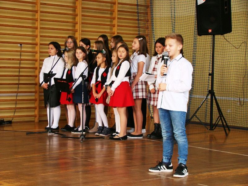 14 października 2021 r. w naszej szkole świętowaliśmy Dzień Edukacji Narodowej. Ten wyjątkowy dzień, rozpoczęliśmy od uczestnictwa we Mszy Świętej w intencji nauczycieli, pracowników szkoły i uczniów. Po Mszy nastąpił przemarsz do budynku szkoły, gdzie odbyła się akademia przygotowana przez Radę Samorządu Uczniowskiego. W trakcie akademii zaprezentowała się również klasa 2 ze swoim występem tanecznym.
