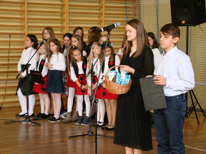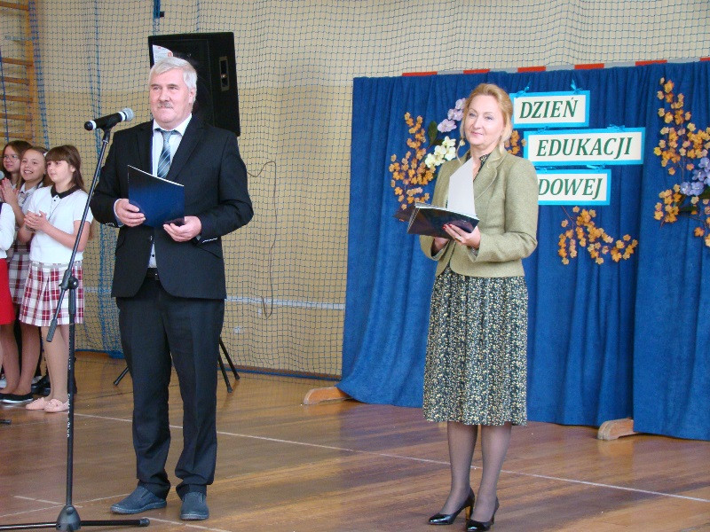 W dalszej części uroczystości Pan Dyrektor Aleksander Łukasik podziękował nauczycielom za współpracę i zaangażowanie. Wręczył nauczycielom nagrody dyrektora szkoły. Życzenia do nauczycieli skierował przewodniczący Rady Rodziców p. Jan Tokarczyk, składając na ręce Pana Dyrektora Aleksandra Łukasika i Pani wicedyrektor Anny Golonki bukiety kwiatów. Na koniec życzenia i słodki upominek dla nauczycieli i pracowników szkoły przekazali członkowie Samorządu Uczniowskiego.