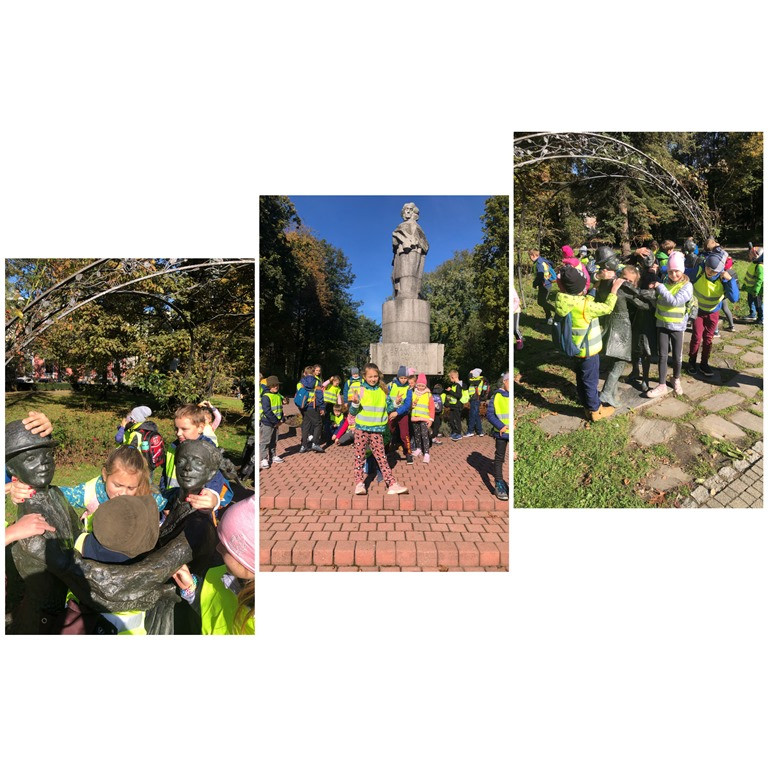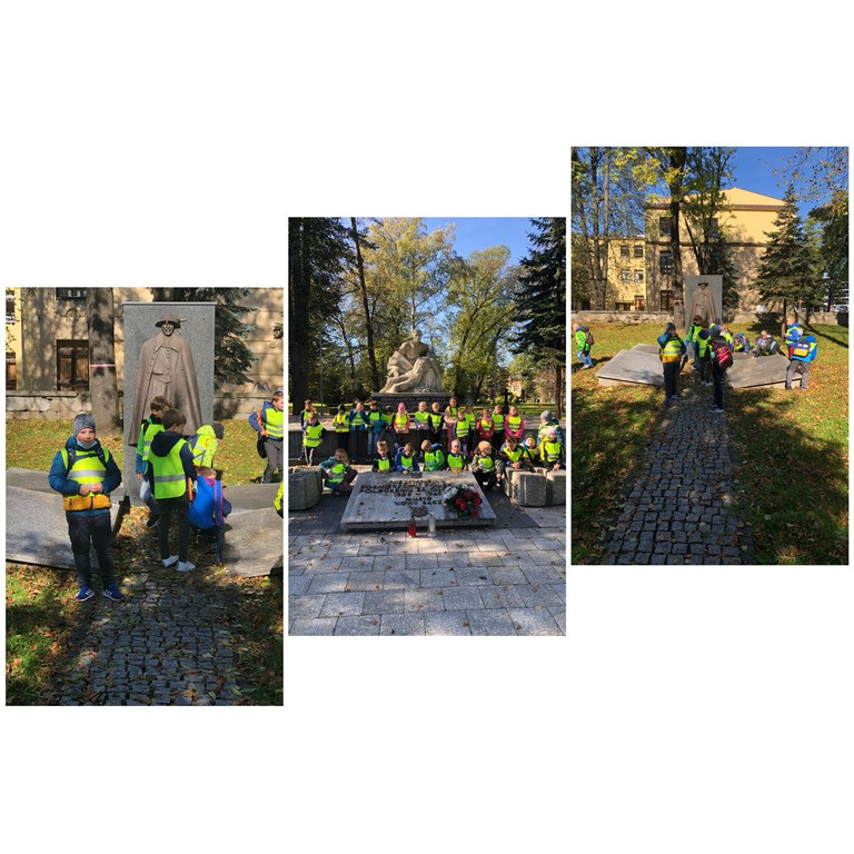 W dalszej części wycieczki szliśmy Deptakiem- ulicy Jagiellońskiej, gdzie każdy mógł sobie kupić pamiątkę z wycieczki. Idąc dalej zwróciliśmy uwagę na zabytkowy obiekt Towarzystwa Gimnastycznego ,,Sokół”, budynek Szkoły Podstawowej im. A. Mickiewicza z pięknymi zdobieniami i popiersiami znamienitych Polaków. Na Plantach- sądeckim parku, w otoczeniu pięknych drzew i roślin oraz w blasku jesiennego słońca, mieliśmy okazję do odpoczynku. Od pomnika Adama Mickiewicza, rozpoczęliśmy spacer Alejami Wolności. Na Starym Cmentarzu, pod pomnikiem mauzoleum- Pieta Sądecka oddaliśmy hołd ofiarom II Wojny Światowej. Nasz spacer zakończył się na Dworcu Kolejowym, gdzie utrwaliliśmy sobie pojęcia związane z transportem kolejowym i z bliska zobaczyliśmy dawną lokomotywę – parowóz, który ustawiony jest przed budynkiem dworca, jako pomnik.
