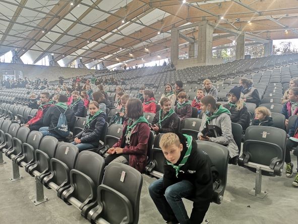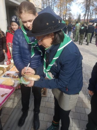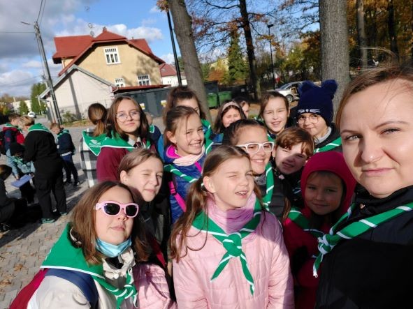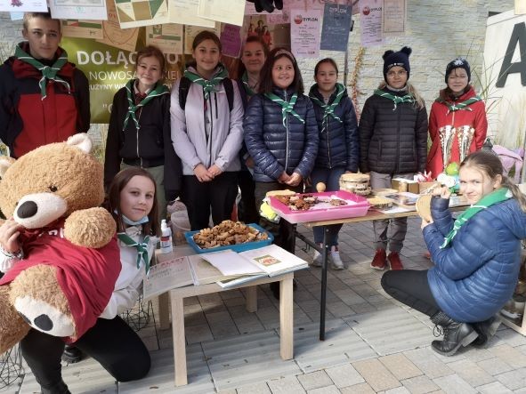 23 października 2021 r. harcerze i zuchy z naszej drużyny wzięli udział w uroczystościach związanych z jubileuszem 110-lecia Harcerstwa Sądecczyźnie. Obchody przebiegały pod hasłem „Patrzeć szerzej” i rozpoczęły się uroczystą mszą świętą w kościele pw. św. Kazimierza w Nowym Sączu. Po niej odbył się uroczysty apel, w czasie którego odsłonięto pamiątkową tablicę w budynku Sokoła. Następnie uczestnicy udali się na piknik harcerski zorganizowany w Parku Strzeleckim. W czasie pikniku każda z drużyn przygotowała stoisko, na którym prezentowała swoje osiągnięcia oraz promowała idee harcerstwa. Nasi harcerze i zuchy przygotowali patchwork prezentujący obecną drużyną oraz przepyszne smakołyki dla odwiedzających nas gości – mufinki marchewkowe, pierniczki w kształcie lilijek harcerskich, szarlotkę, rogaliki i tradycyjne podpłomyki. Każdy odwiedzający otrzymywał pamiątkowy skautowski węzeł przyjaźni i naklejki i pieczątki z logo drużyny. Goście mogli przejrzeć kroniki drużyny, dyplomy z wielu harcerskich imprez, poczęstować się przysmakami i wpisać do kroniki. Nasze stoisko odwiedziła m.in. pani dyrektor Anna Golonka, komendantka Hufca Nowy Sącz hm. Justyna Blukacz, kadra i seniorzy z hufca oraz drużynowi wraz ze swoimi podopiecznymi z innych drużyn działających na terenie Sądecczyzny. Harcerze i zuchy mieli też okazję spotkać się z funkcjonariuszami Straży Granicznej i Policji oraz strażakami z Państwowej Straży Pożarnej w Nowym Sączu. Kolejnym punktem obchodów 110- lecia była uroczysta gala, na którą przybyli m.in. Marszałek Województwa Małopolskiego Witold Kozłowski, prezydent Nowego Sącza Ludomir Handzel, Komendant Chorągwi Krakowskiej hm. Mariusz Siudek, przedstawiciele władz powiatu nowosądeckiego, dyrektorzy szkół oraz rodzice, harcerze i zuchy z drużyn działających w Hufcu Nowy Sącz. W czasie gali nie obyło się bez jubileuszowego tortu i wspólnego harcerskiego śpiewania. Po oficjalnych uroczystościach była okazja do zabawy na koncercie piosenek harcerskich.
