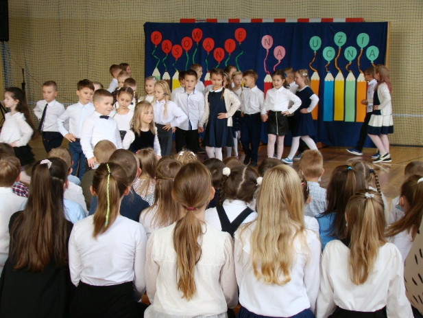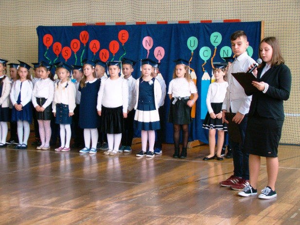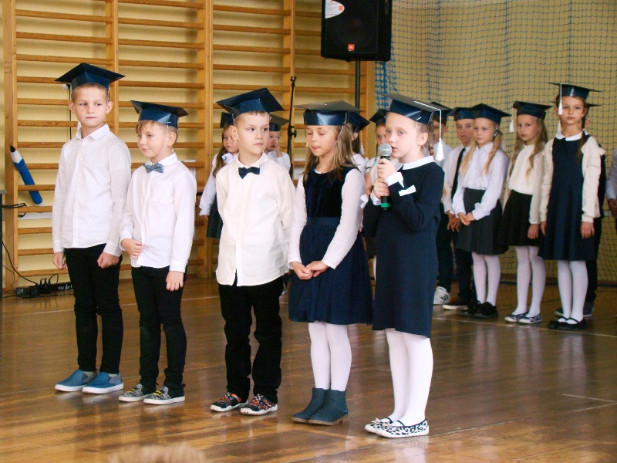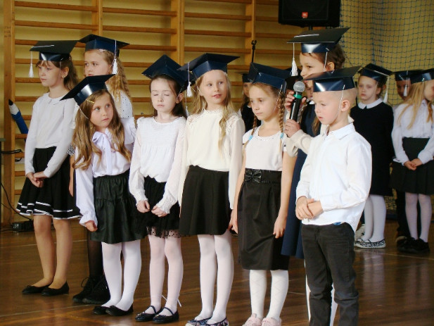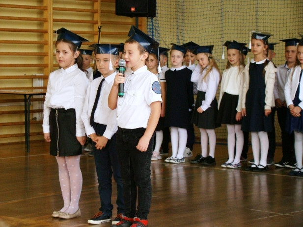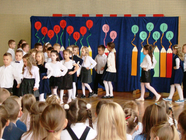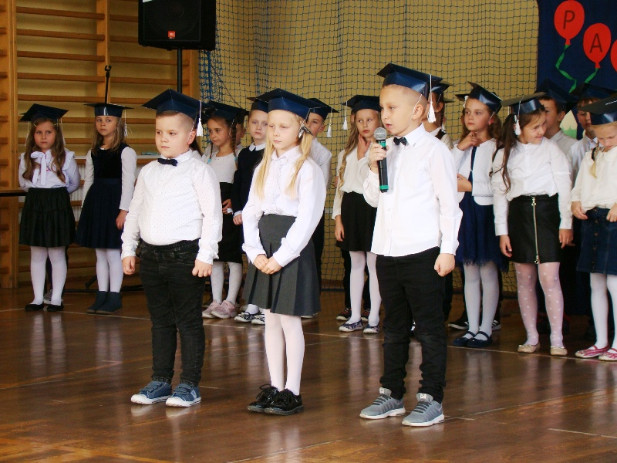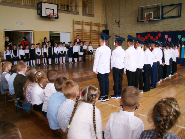 Zanim pierwszoklasiści zostali przyjęci do grona społeczności szkolnej musieli przedstawić to, czego już się w szkole nauczyli. Gotowi, odświętnie ubrani i bardzo przejęci przystąpili do zaprezentowania swoich umiejętności. Rozpoczęto tradycyjnie od zatańczenia poloneza. Następnie zadaniem uczniów było m.in. zaśpiewanie piosenek, recytacja wierszy oraz umiejętność odpowiedzi na szereg bardzo ważnych pytań, w szczególności zawartych w "Katechizmie polskiego dziecka". Po zakończonej prezentacji nikt nie miał wątpliwości, że wszystkie dzieci wspaniale zdały "egzamin pierwszoklasisty".