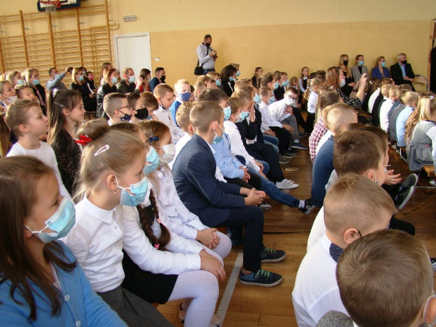 Uroczystość odbywała się wg wytycznych MEiN, MZ, GIS dotyczących COVID -19. W uroczystości brali udział przedstawiciele Rady Rodziców, dyrektorzy szkoły, nauczyciele i rodzice uczniów klas pierwszych.