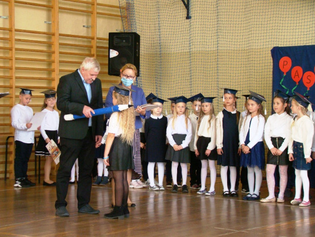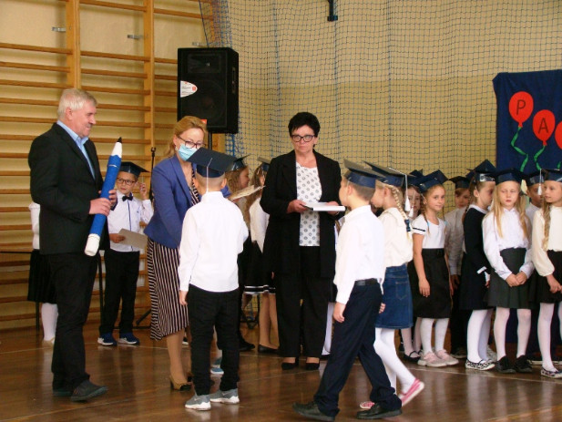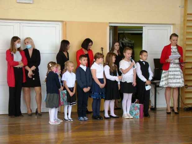 Doniosłym momentem uroczystości było ślubowanie pierwszoklasistów, które wzbudziło wiele emocji. Aktu pasowania dokonał pan dyrektor Aleksander Łukasik wraz z wicedyrektorem - panią Anną Golonka. Tym samym pierwszaki zostały włączone do społeczności uczniowskiej Szkoły Podstawowej im. Kard. Stefana Wyszyńskiego w Przysietnicy. Dowodem były akty pasowania na ucznia wręczone dzieciom.