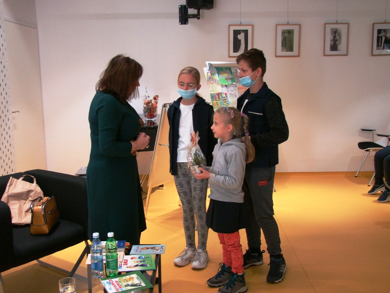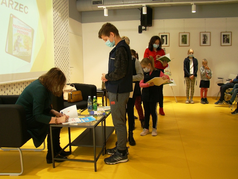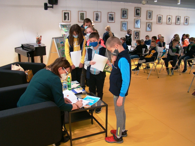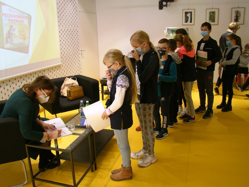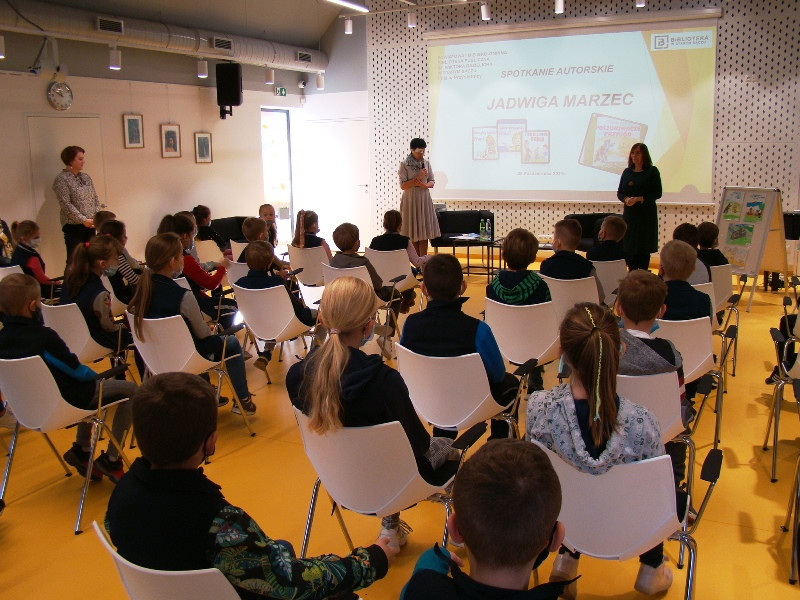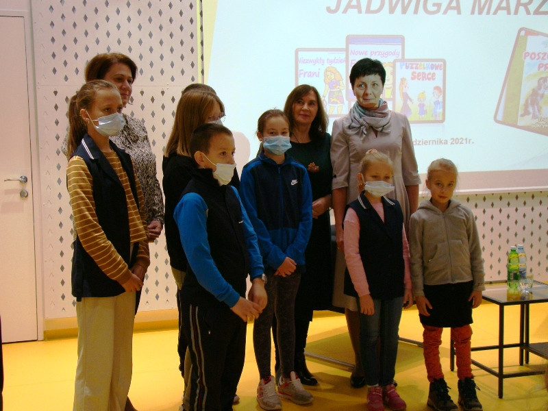 Pani Jadwiga ciekawie opowiadała dzieciom o swoich książkach i prezentowała ich fragmenty. Odpowiadała na dociekliwe pytania młodych czytelników o to, jak powstaje książka, skąd się biorą pomysły i jak wygląda droga od powstania do wydania książki. Zachęcała gorąco dzieci do czytania i rozwijania swojej wyobraźni i twórczości. Na zakończenie każdy obdarowany książką uczeń mógł otrzymać autograf autorki.