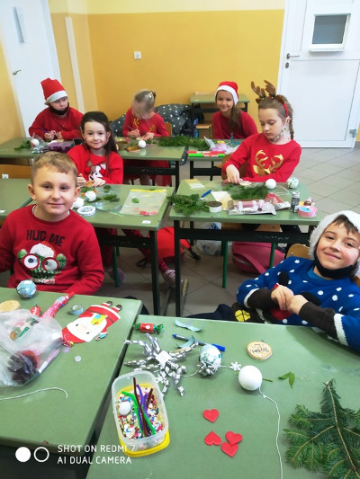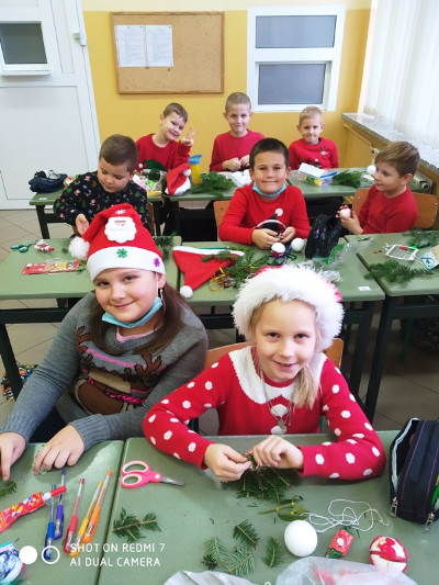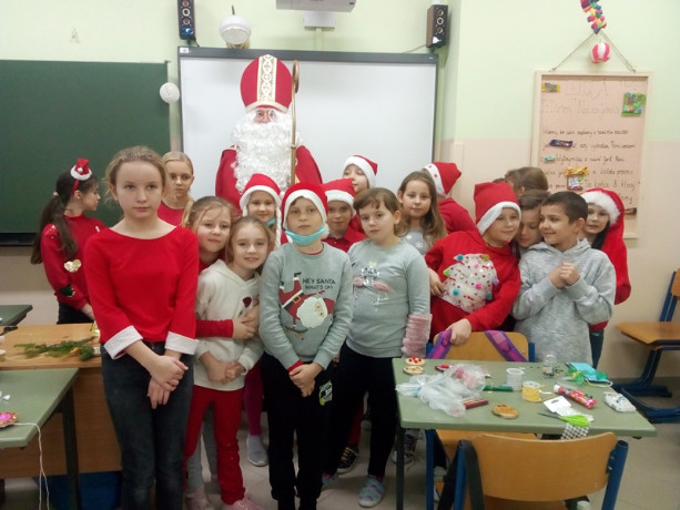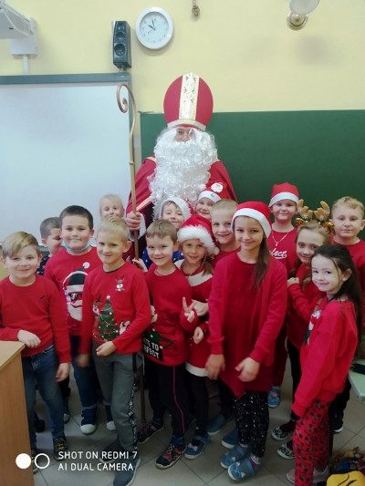 6 grudnia 2021r. uczniowie naszej szkoły powrócili do tradycji Poszukiwania Mikołaja. W poniedziałkowy poranek w klasach na uczniów czekały listy od Świętego Mikołaja zapraszające na spotkanie ze słynnym Świętym we wskazanym miejscu na terenie Przysietnicy. Wszyscy zgodnie wyruszyli w różnych kierunkach , podziwiając pierwszy śnieg tej zimy. W czasie spaceru uczniowie lepili bałwany, rzucali się śnieżkami i świetnie się bawili. Po przybyciu na wskazane miejsce okazało się, że niestety nie doszło do spotkania i konieczny jest powrót do szkoły. Po rozgrzaniu się ciepłą herbatą i pysznym śniadaniem uczniowie rozpoczęli przygotowania do dekorowania korytarzy i sal lekcyjnych. Wszyscy uczniowie wykonali ozdoby ekologiczne, które upiększyły szkołę i wprowadziły prawdziwie świąteczny nastrój. Na koniec każdy otrzymał prezent i wspólnie cieszono się z przygotowanych niespodzianek. Dzień był bardzo udany i z pewnością na długo zostanie w pamięci wszystkich.