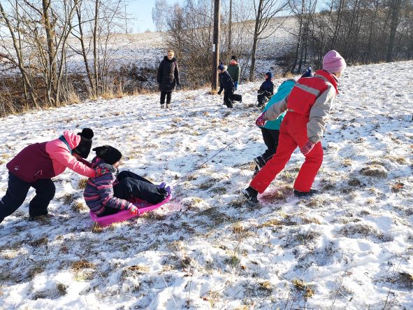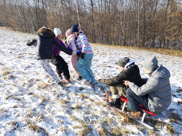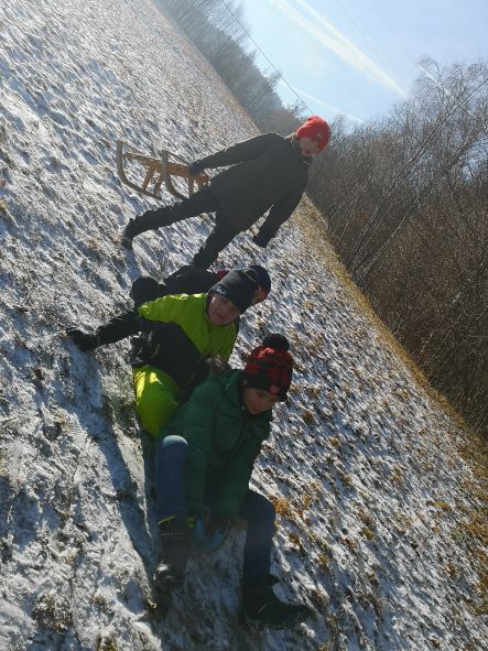 19.01.2022r. zuchy i harcerze z drużyny Orion spędzili wspólnie czas na zbiórce w terenie. Piękna zimowa pogoda i odrobina śniegu wystarczyły wszystkim do aktywnego spędzenia wolnego czasu na świeżym powietrzu. W czasie spotkania w terenie wszyscy wspaniale bawili się, zjeżdżając na sankach, nartosankach, plastikowych jabłuszkach itp., a niedobory śniegu na trasie nie przeszkadzały w rywalizacji zastępów w wyścigach na sankach. Wspaniała atmosfera i super zabawa sprawiła, że wszyscy już w czasie zbiórki zaczęli planować kolejne takie spotkania. W grupie zawsze jest weselej!!!