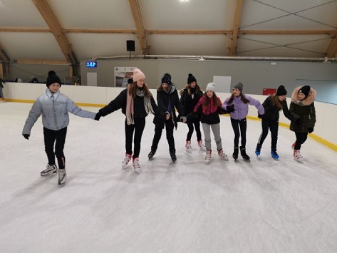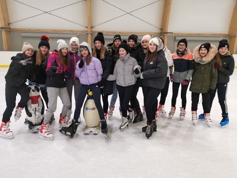 13.01.2022r. dziewczęta klasy 8a i 8b wzięły udział w lekcji wychowania fizycznego zorganizowanej na krytym lodowisku w Nowym Sączu. Zajęcia były okazją do nauki i doskonalenia rekreacyjnej jazdy na łyżwach. Uczennice z ogromnym zaangażowaniem ćwiczyły podstawowe elementy techniki łyżwiarstwa. Ciekawa forma zajęć sprawiła, iż zajęcia sprawiły wszystkie uczestniczki świetnie się bawiły, ucząc się nowych umiejętności.