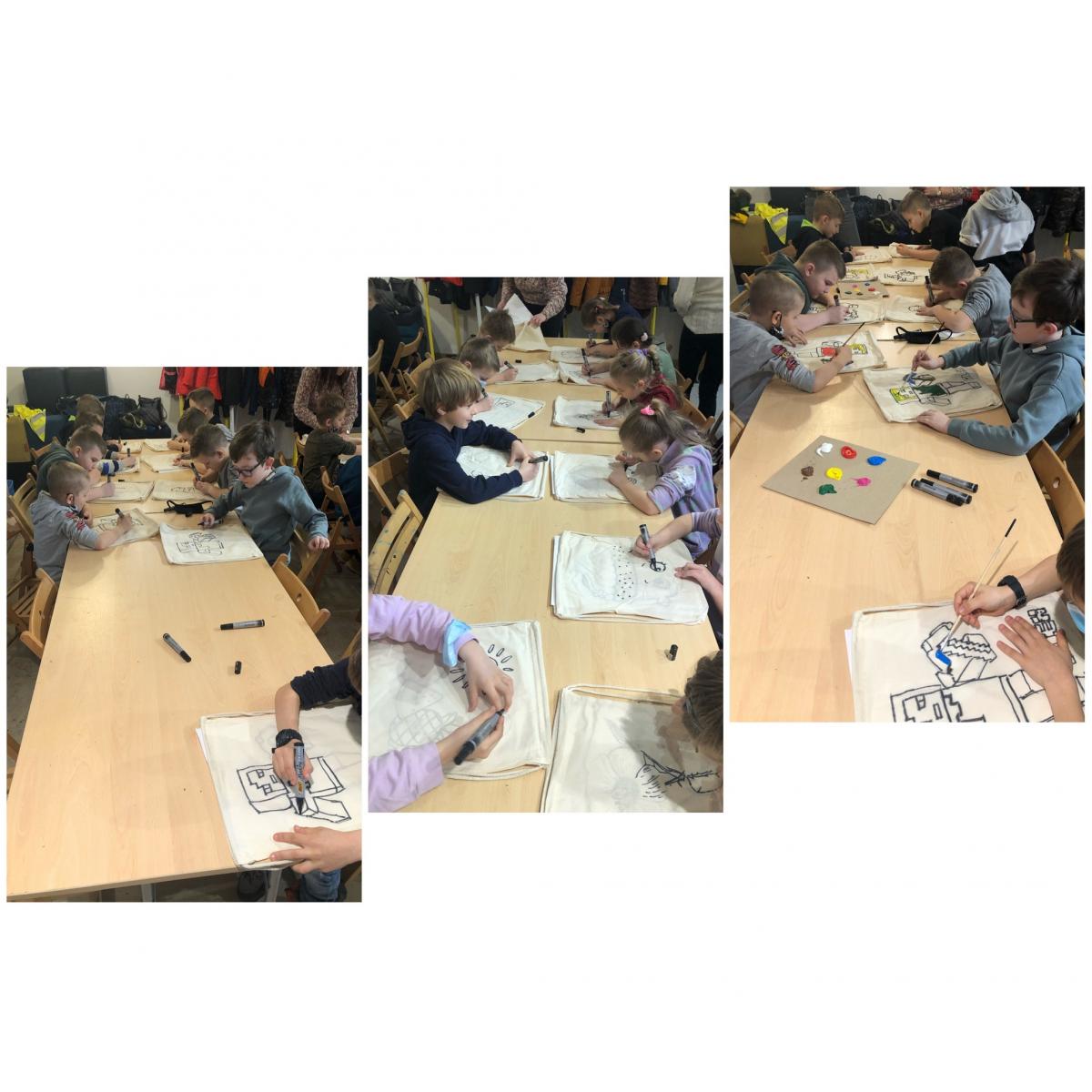 1 marca 2022 r. uczniowie z klasy II brali udział w warsztatach w Małopolskim Centrum Kultury SOKÓŁ. Zadaniem dzieci, było samodzielne ozdabianie plecaków. Dzieci postępowały zgodnie ze wskazówkami pani artystki- plastyk. Każdy plecak był innyi niepowtarzalny, ale kolorowy i piękny. Oddawał charakter jego właściciela. Zajęcia były bardzo ciekawe. Jeszcze je powtórzymy.