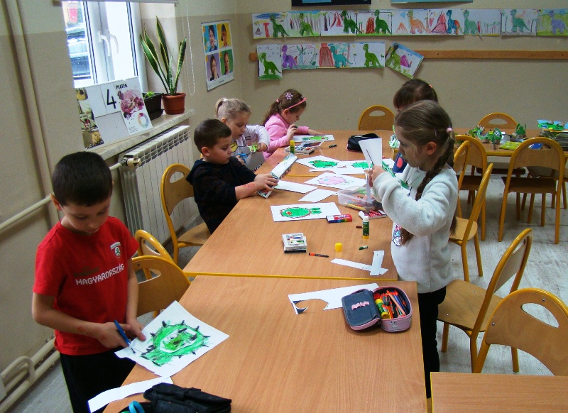 W pierwszym tygodniu marca dzieci z oddziału przedszkolnego 0-1 uczyły się o dinozaurach. Chyba każdy z nas chciałby przenieść się na chwilę do czasów prehistorycznych, by na własne oczy zobaczyć te niesamowite stworzenia. Gady te wyginęły blisko sześćdziesiąt sześć milionów lat temu, po blisko 135 mln życia na naszej planecie. Dzieci poznały trudne nazwy dinozaurów takie jak: Apatozaurus, Tyranozaur Rex, Triceratops, Stegozaur. Dowiedziały się również kim jest paleontolog i na czym polega jego praca. W ramach ćwiczeń praktycznych przeliczały dinozaury, tworzyły zbiory. Zrobiły też kącik w naszej klasowej biblioteczce z atlasów, albumów i figurek dinozaurów przyniesionych z domów. Bardzo chętnie dzieliły się swoją wiedzą między sobą. W piątek na podsumowanie tematu obchodziły „Dzień dinozaura”. Rozwiązywały zagadki dotyczące pracy paleontologa. Odszukiwały i dopasowywały zestawy kości dinozaurów do odpowiedniej ilustracji dinozaura. Brały udział w zabawach ruchowo – naśladowczych. Samodzielnie wykonały swojego Stegozaura z papieru. Było mnóstwo śmiechu, zabawy i nauki. Dzieciaki dumnie prezentowały swoją wiedzę.