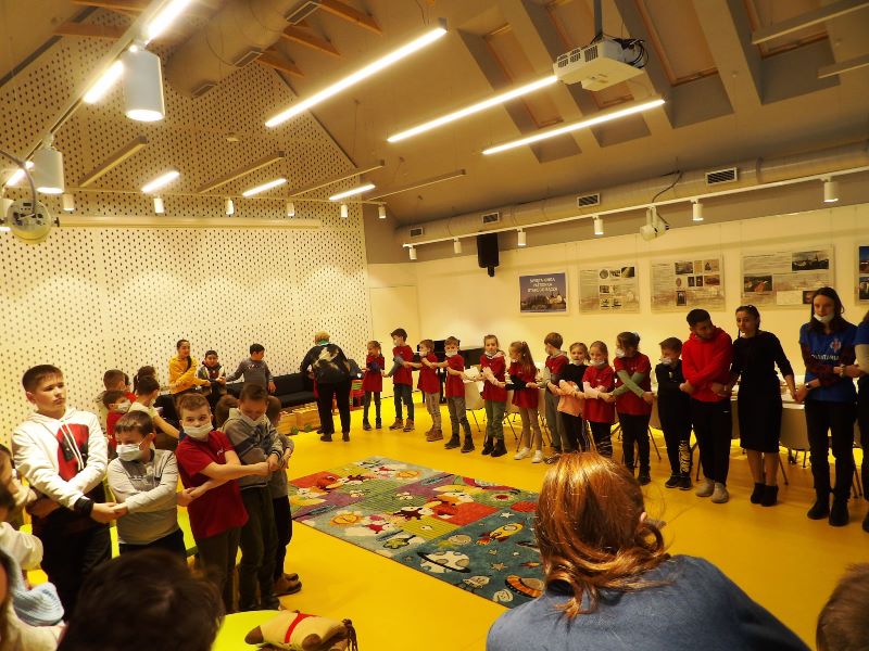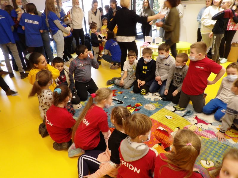 We wtorek po południu 15 marca 2022 r. Wolontariusze, Zuchy i Harcerze z 1 NDWp Orion oraz członkowie szkolnego koła PCK wraz z opiekunami mieli okazję spotkać się i ugościć w Bibliotece Publicznej w Przysietnicy uchodźców z Ukrainy, którzy wskutek wojny w Ukrainie musieli opuścić swój kraj i zostali zakwaterowani w Przysietnicy. Podczas wizyty była z nami obecna sołtys Przysietnicy – pani Bożena Ogorzały, dzięki której doszło do tego spotkania. Na początek zawiązaliśmy krąg przyjaźni, a Zuchy i Harcerze zaśpiewali i zatańczyli dla naszych gości oraz rozdali przygotowane wcześniej laurki, malowanki, kredki, plecaki i maskotki. Wolontariat wspólnie z PCK zorganizował poczęstunek oraz poprowadził tańce integracyjne. Podczas spotkania panowała życzliwa atmosfera, a trudności w komunikacji i przełamywaniu bariery językowej pomagały przezwyciężyć gesty dobroci oraz aplikacja google tłumacz. Wszyscy czuli się dobrze i mogli choć przez chwilę oderwać się od trudnej rzeczywistości, zwłaszcza podczas wykonywania tańca belgijskiego, kaczuszek oraz wspólnego posiłku.