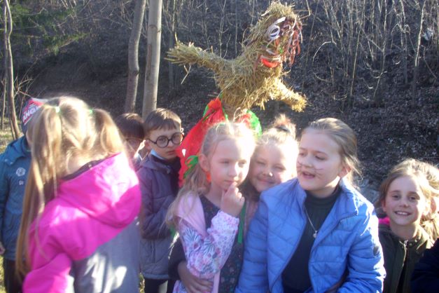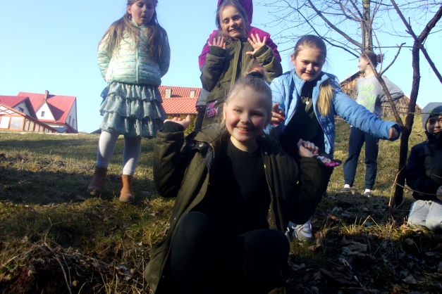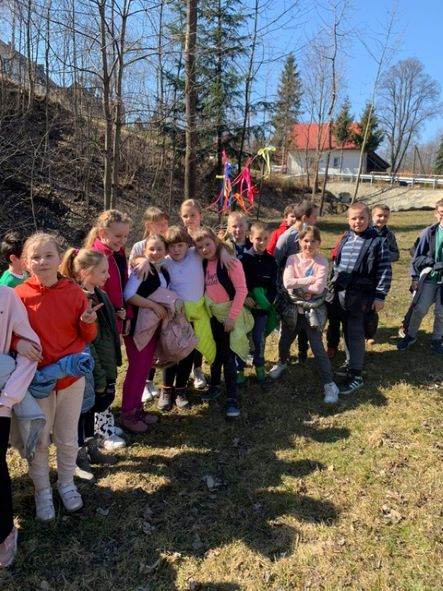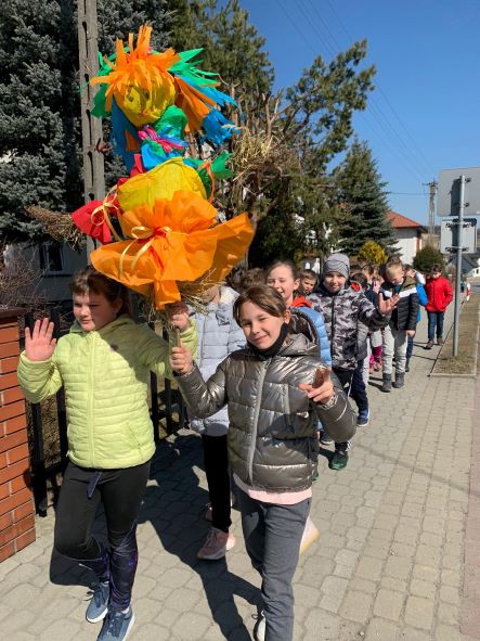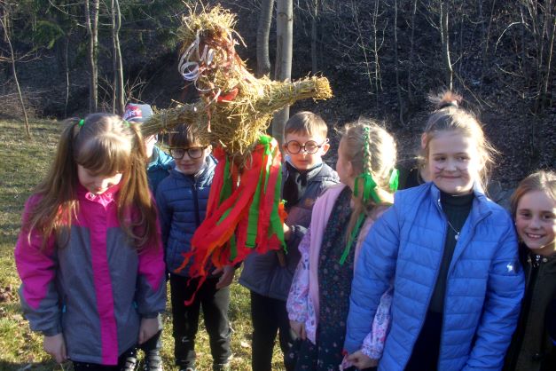 Pierwszy dzień wiosny to również żegnanie zimy, o czym nie zapomniały dzieci z klas I-III. Korzystając z pięknej pogody, każda klasa wyruszyła z Marzanną na spacer w poszukiwaniu oznak wiosny. Nad potokiem pożegnano zimę paląc Marzannę i wrzucając ją do wody ze słowami- ,,Płyń, przepadnij zimo i nie wracaj do nas. Na przyjęcie wiosny otwórzmy ramiona”.