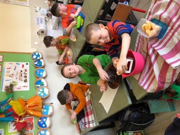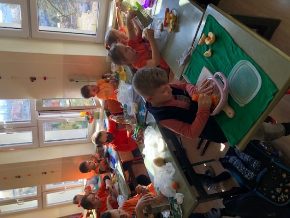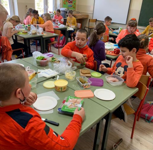 W tym dniu, uczniowie każdej klasy przyszli ubrani jednokolorowo. Każda klasa miała za zadanie wykonać zdrowy posiłek. Były to kanapki, sałatki, surówki oraz soki. Dzieci układały prozdrowotne rymowanki i wykonywały plakaty, przypominające o dobrym odżywianiu się oraz właściwych nawykach sprzyjających naszemu zdrowiu.