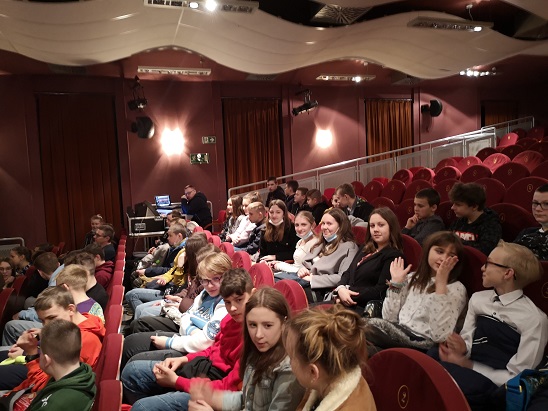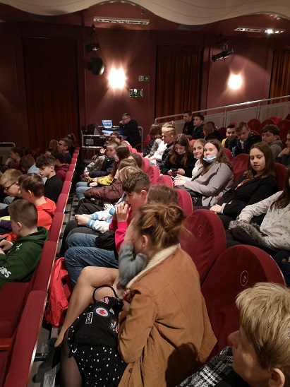 Na wyjazd do teatru czekaliśmy prawie dwa lata…Skorzystaliśmy więc z oferty Miejskiego Ośrodka Kultury i 24 marca pojechaliśmy do Nowego Sącza, żeby zobaczyć „Balladynę” przygotowaną przez grupę „Cudoki – Szuroki”. Wcześniej jednak, pokazaliśmy naszym uczniom z klas VI i VII-ych Nowy Sącz. Oczywiście każdy często tam bywa, ale przede wszystkim na zakupach…Tym razem nasi wychowankowie zostali wyposażeni w instrukcję „gry miejskiej” i ruszyli aktywnie zwiedzać miasto. Zobaczyliśmy najważniejsze zabytki sądeckiej „starówki”, między innymi: ruiny zamku, ratusz, bazylikę…Finałem zabawy było odgadnięcie cytatu z „Balladyny”. Przedstawienie, na które dotarliśmy po wędrówce przez Nowy Sącz, obejrzeliśmy z dużym zainteresowaniem. Dla niektórych była to pierwsza wizyta w prawdziwym teatrze. Młodzi artyści zachwycili dojrzałą grą aktorską. Na szczególną uwagę zasługiwały: ruch sceniczny, efekty specjalne, muzyka. Spektakl wszystkim się podobał i przekonał do teatru tych, którzy wcześniej twierdzili, że nie lubią takiej rozrywki…Po przedstawieniu można było usłyszeć pytanie o następny wyjazd do teatru…