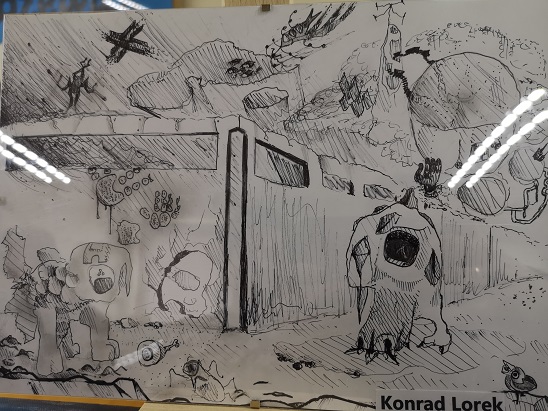 22 kwietnia 2022r. w Powiatowym Młodzieżowym Domu Kultury w Starym Sączu odbył się wernisaż prac ucznia klasy 7a – Konrada Lorka oraz jego kolegi Maxa Luberdy. Z ogromną dumą i przyjemnością mogliśmy podziwiać talent plastyczny naszego ucznia oglądając prace wykonane różnymi technikami. Widząc poziom każdego obrazu utworzonego w ramach zajęć plastycznych organizowanych przez PMDK w Starym Sączu, mamy nadzieję na dalszy dynamiczny rozwój artystyczny Konrada. Gratulujemy i życzymy kolejnych sukcesów.
