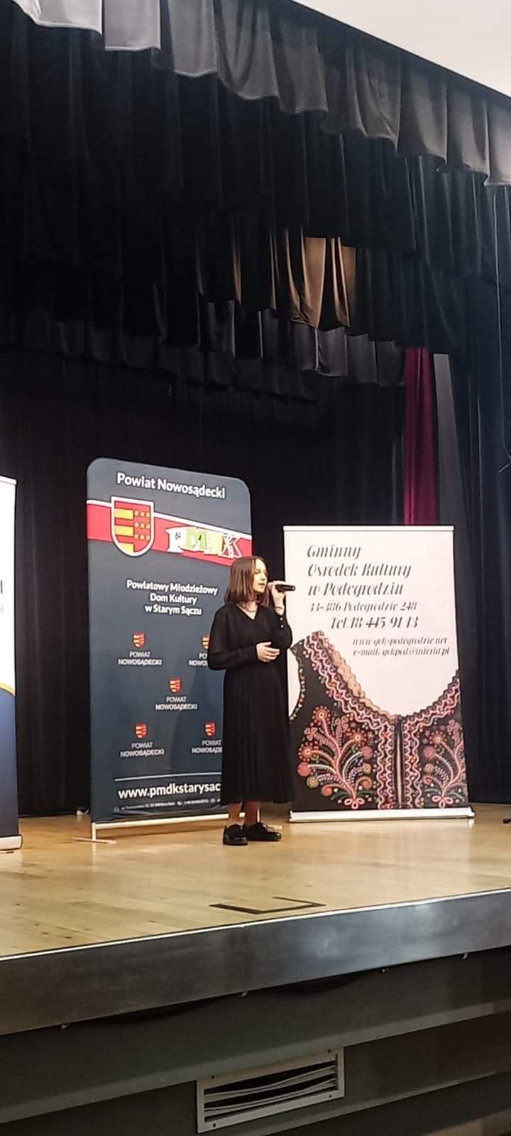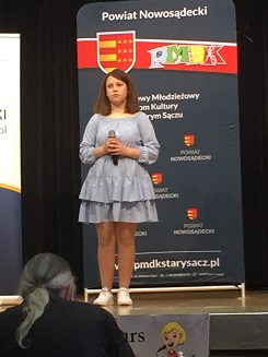 08.04.2022r w GOK w Podegrodziu odbyły się eliminacje do XXVII Starosądeckiego Konkursu Młodych Wokalistów pod patronatem Starosty Nowosądeckiego Marka Kwiatkowskiego. Naszą szkołę reprezentowały: Ilona Stawiarska z klasy 7a z piosenką " Martwe morze" i Gabriela Radomska z klasy 7b z piosenką "You & I". Do Wielkiego Finału, który odbył się 20.04.2022r w Centrum Kultury i Sztuki w Starym Sączu zakwalifikowała się Gabrysia Radomska. Tego typu konkursy sprzyjają popularyzacji zainteresowań muzycznych oraz promowaniu i poszukiwaniu młodych talentów. Niejednokrotnie występy młodych artystów są początkiem kariery muzycznej czego życzymy naszym zdolnym wokalistkom.