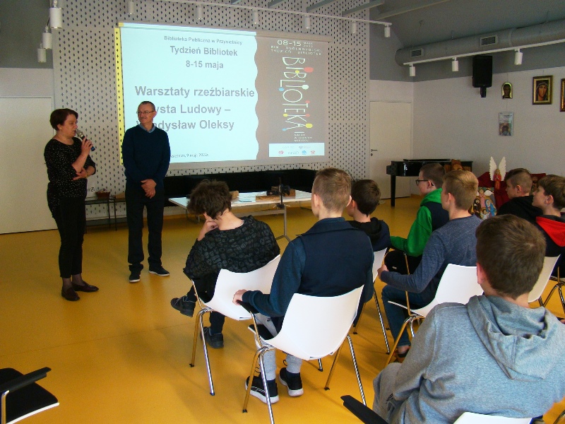 W ramach „Tygodnia Bibliotek” Biblioteka Publiczna w Przysietnicy zaprosiła uczniów klasy VI oraz klas VII na warsztaty rzeźbiarskie. Zajęcia prowadzone były przez ludowego artystę rzeźbiarza Pana Władysława Oleksego z Paszyna.