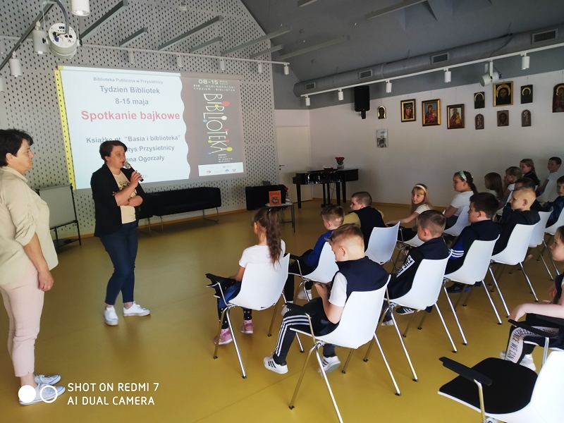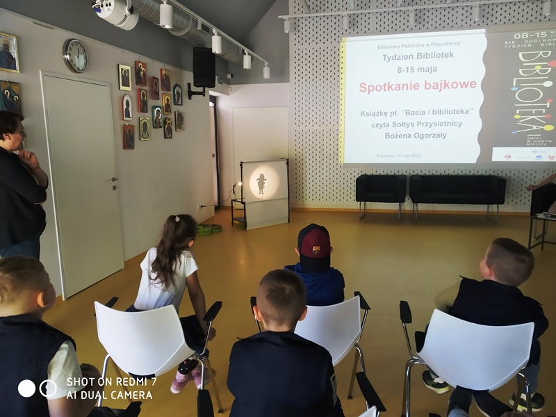 Dnia 10.05.2022r. uczniowie z klasy 1a i 1b brali udział w Tygodniu Bibliotek w Przysietnicy. Spotkanie rozpoczęło się od wysłuchania książki pt. „Basia i biblioteka”. Następnie dzieci opowiedziały o czym była wysłuchana opowieść. Dzieci miały również możliwość zadawania pytań Pani Sołtys i dzięki temu dowiedziały się, na czym polega praca sołtysa. Na koniec odbył się przy użyciu teatrzyku cieni mini-konkurs „Z jakiej bajki jestem?”. To była bardzo ciekawe spotkanie.
