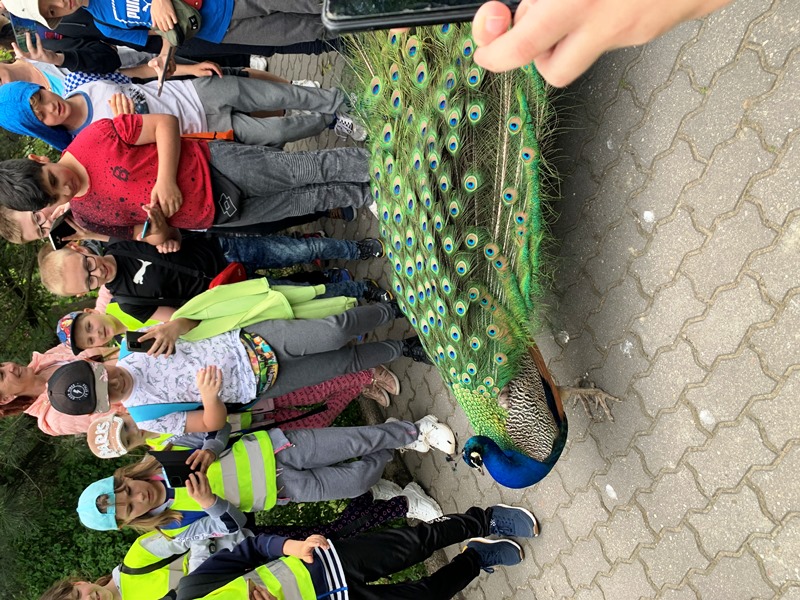 Pierwszym punktem programu było zwiedzanie ZOO. Dzieci miały możliwość zobaczyć z bliska, jak wyglądają w rzeczywistości zwierzęta z różnych regionów świata. Ogromne wrażenie wywarło spotkanie z pawiem, który spacerował wśród zwiedzających i pozował do zdjęć z okazałym ogonem mieniącym się różnymi kolorami. W ZOO dzieci poznały barwne ptaki, drapieżne koty, terrarium z wężami, figlarne małpki, dom żyrafy i wiele innych, które młodzi reporterzy uwieczniali na zdjęciach. Uwagę również przykuło fantastyczne „Pingwinarium”.