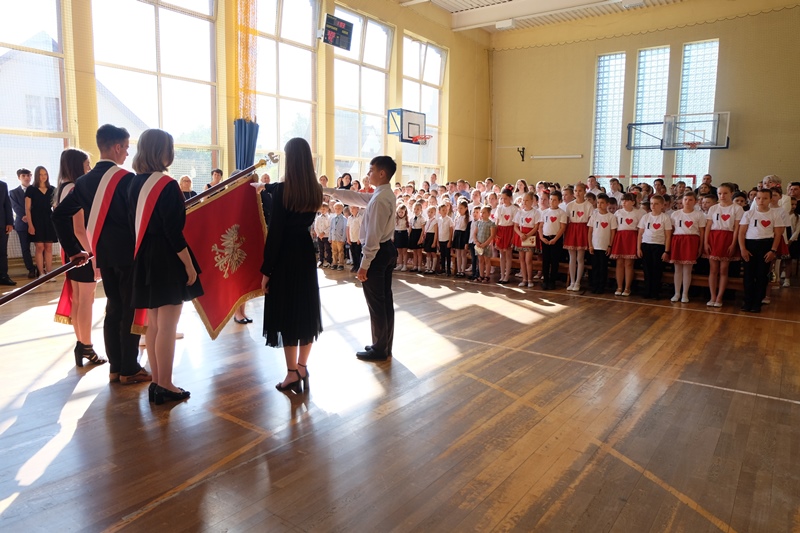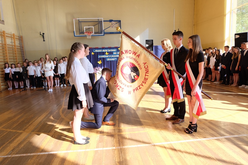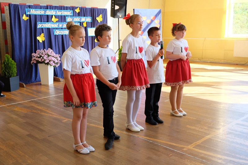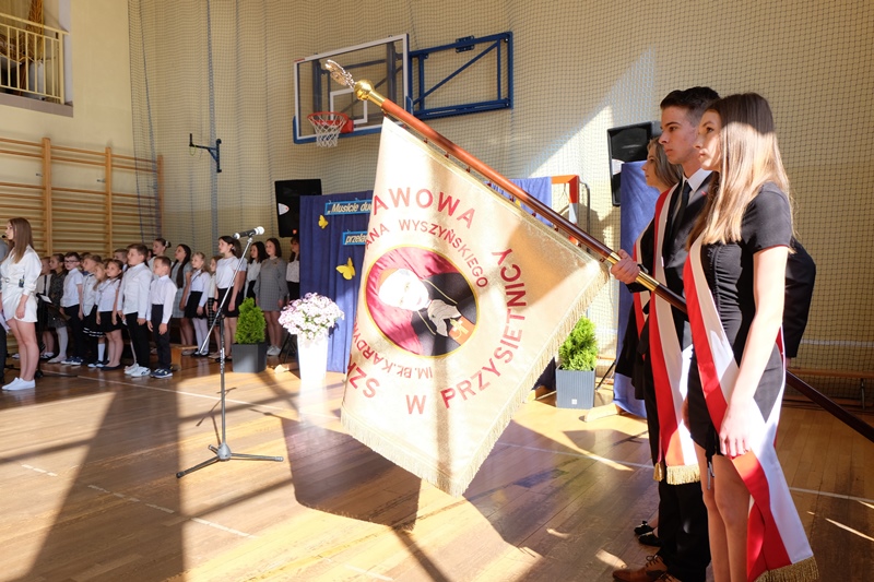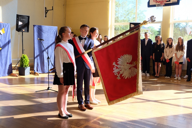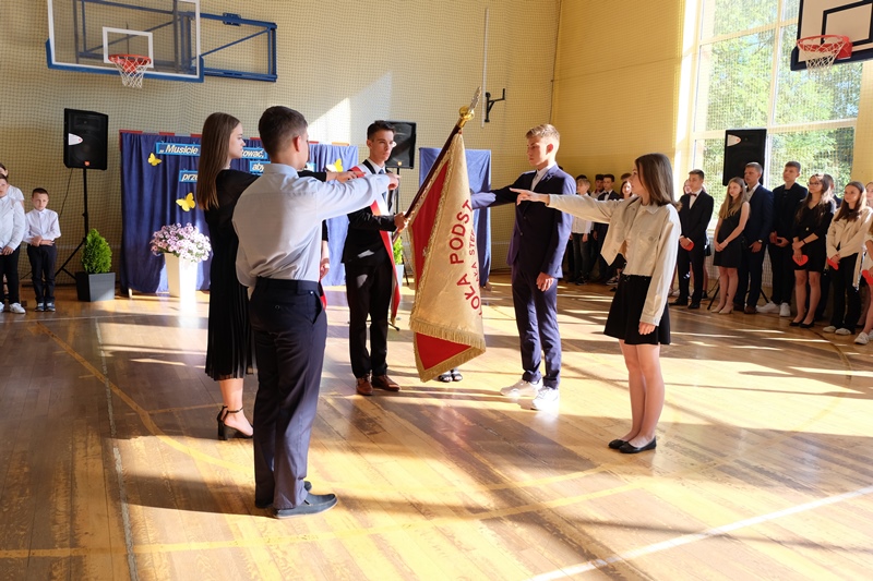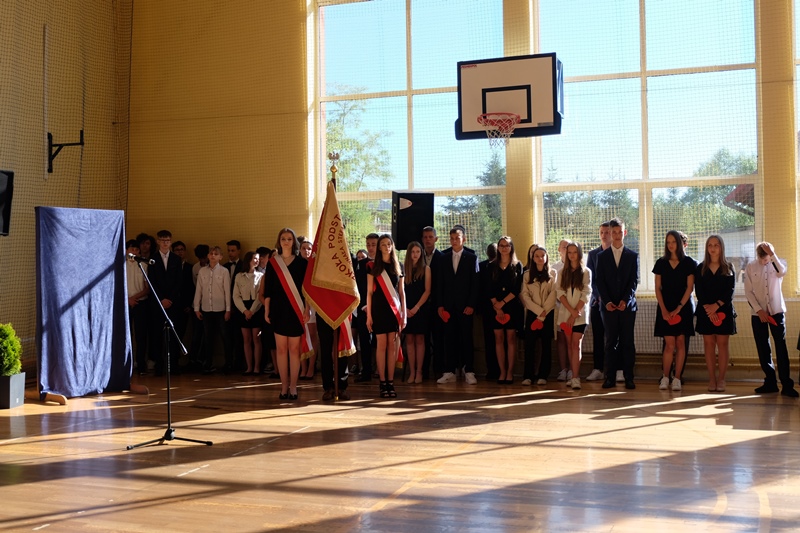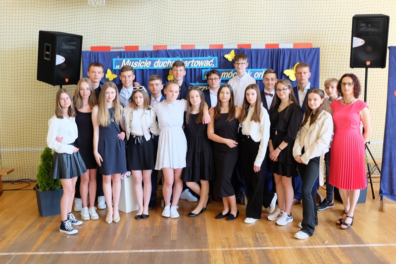 "Musicie ducha hartować, aby móc jak orły przelatywać w przyszłość Ojczyzny!" – pod takim hasłem odbywała się akademia na zakończenie roku szkolnego 2021/22 przygotowana przez uczniów klas kończących szkołę.