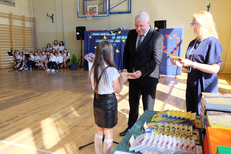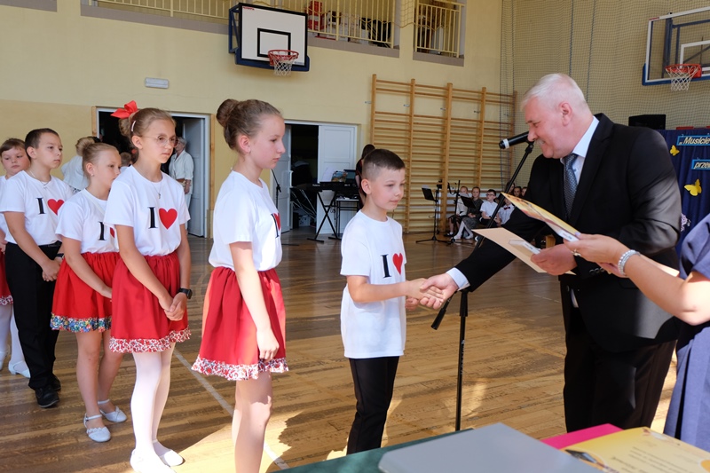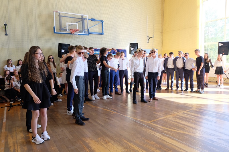 Uczniowie w uroczysty i wzruszający sposób podziękowali rodzicom i nauczycielom za pracę „z nimi i nad nimi”. Zaprezentowali też dawkę humoru w postaci muzycznego skrótu wydarzeń z bieżącego roku szkolnego i „tanecznym” krokiem ruszyli po świadectwa, a potem na spotkanie z przygodą!