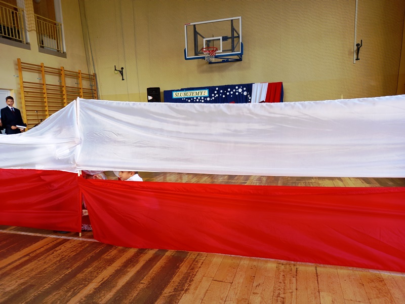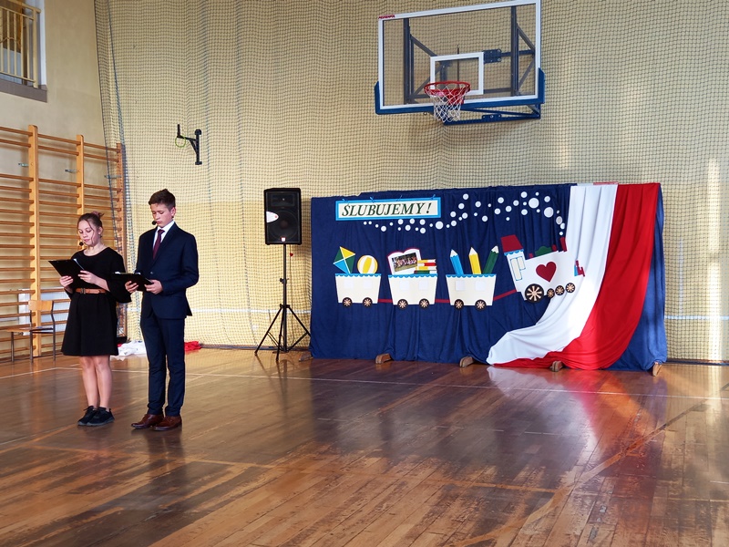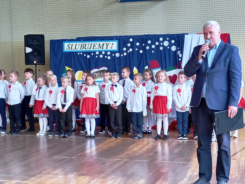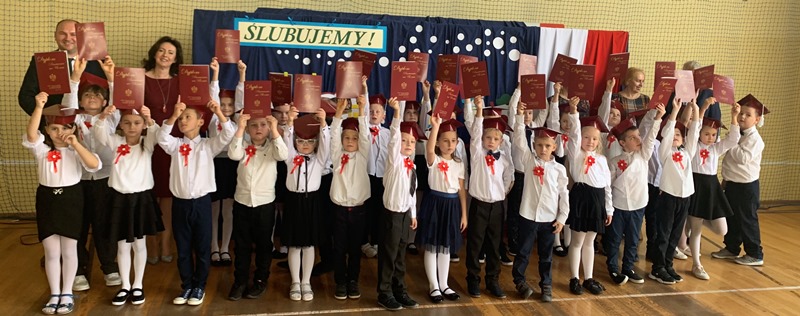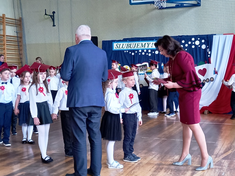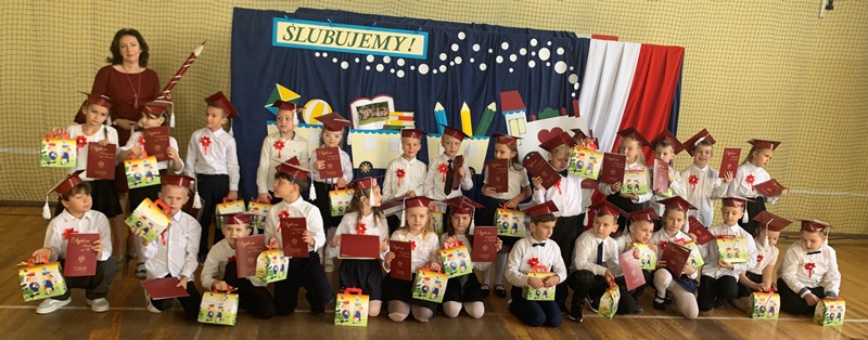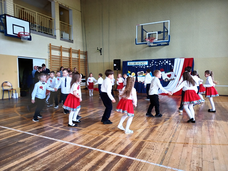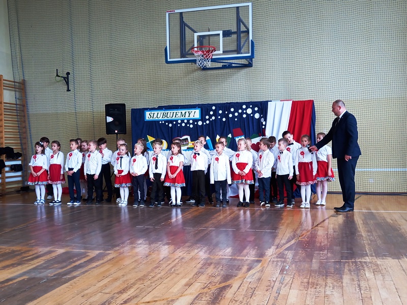 Uroczystość rozpoczęła się występem artystycznym, przygotowanym pod kierunkiem wychowawczyni - pani Aliny Citak. Pierwszacy błysnęli talentem. Wykazali się imponującą wiedzą o swojej małej i dużej Ojczyźnie, doskonale zdali test z różnych dziedzin wiedzy. Pięknie zaśpiewali piosenki, wystąpił także duet polsko-ukraiński, w którym dzieci udowodniły, że przyjaźń i koleżeństwo jest możliwe mimo utrudnień językowych. Taniec z flagą wywołał u oglądających duże wzruszenie. Później dzieci z honorem złożyły ślubowanie na Sztandar Szkoły. Było to duże przeżycie dla wszystkich obecnych. Po ślubowaniu, pan dyrektor Aleksander Łukasik uroczyście pasował uczniów symbolicznym ołówkiem. Wychowawczyni wręczyła pierwszoklasistom pamiątkowe dyplomy pasowania na ucznia. Na koniec akademii dzieci w barwnych strojach zatańczyły rytmiczną „Belgijkę”.