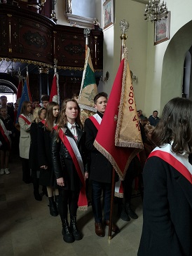 11 listopada 1918 roku to znacząca data w historii Polski – dzień odzyskania niepodległości. Poczet Sztandarowy naszej szkoły: H Kulig, G. Garwol. K. Ogorzały wraz z Dyrektorem A. Łukasikiem oraz opiekunami M. Jarząb i E. Konicką wzięli udział w Gminnych uroczystościach 104 rocznica odzyskania przez Polskę niepodległości. Po uroczystym  złożeniu wiązanek pod pamiątkową tablicą przy MCK Sokół w Starym Sączu wszyscy uczestnicy udali się do Rynku, gdzie została podniesiona flaga państwowa i odśpiewano Hymn Polski. Następnie  w kościele parafialnym pw. Św. Elżbiety została odprawiona msza za ojczyznę. Po niej na Cmentarzu Komunalnym odbył się Apel Poległych. Udział w uroczystościach  obchodów 11 Listopada to wyraz naszej wdzięczności i uznanie wszystkim tym, którzy walczyli i ginęli za naszą wolną Polskę. Oddajemy hołd naszej ojczyźnie.
