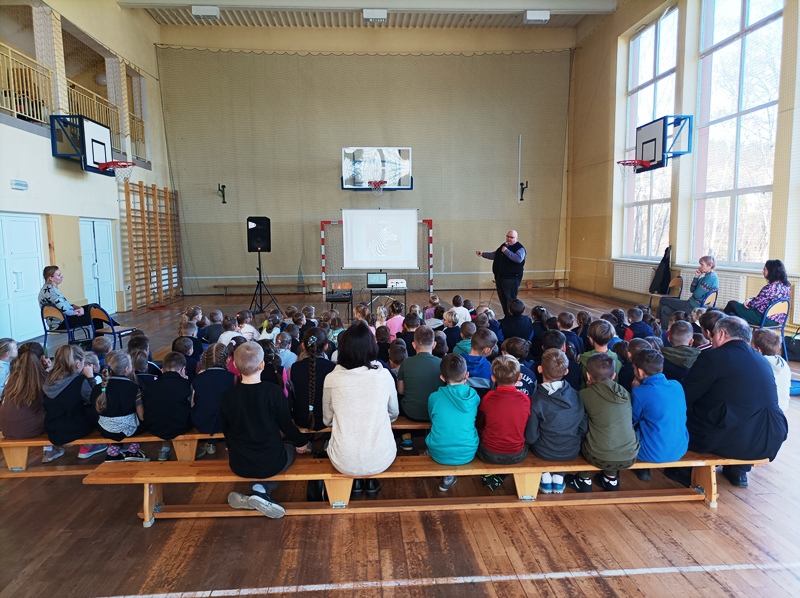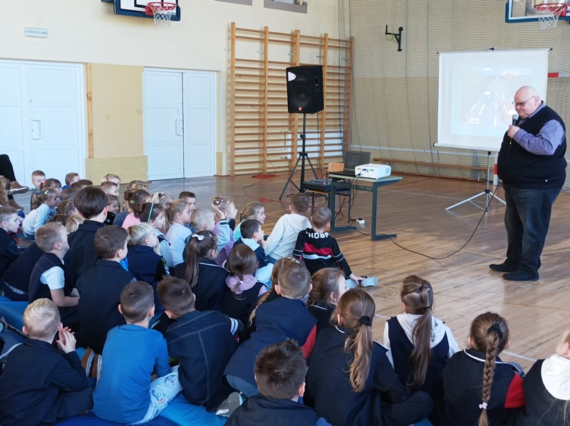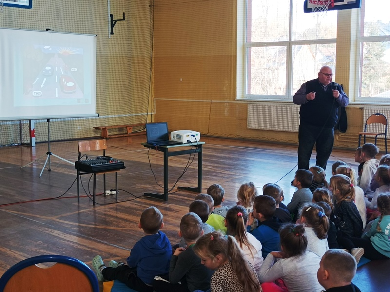 W trosce o bezpieczeństwo najmłodszych uczniów w naszej szkole 15 listopada została przeprowadzona prelekcja przez pracownika Miejskiego Ośrodka Ruchu Drogowego w Nowym Sączu. Zajęcia edukacyjne były bardzo ciekawe, a tematem spotkania były przepisy dotyczące bezpieczeństwa pieszych, a także zagadnienia związane z elementami odblaskowymi i dlaczego ich posiadanie jest takie ważne. Wszystkie dzieci z klas 0-III aktywnie uczestniczyły w wykładzie i chętnie chwaliły się swoją wiedzą na temat bezpieczeństwa w ruchu drogowym. Nie obyło się bez instruktażu prawidłowego przechodzenia przez różne przejścia dla pieszych. Uczniowie dumnie odpowiadali na pytania.