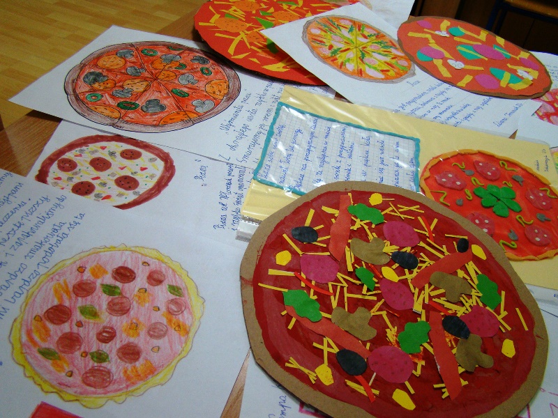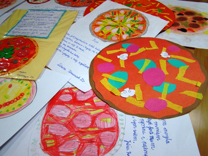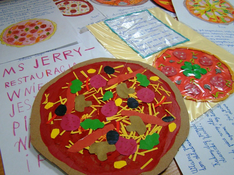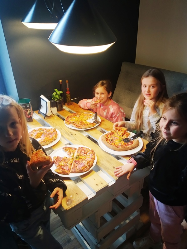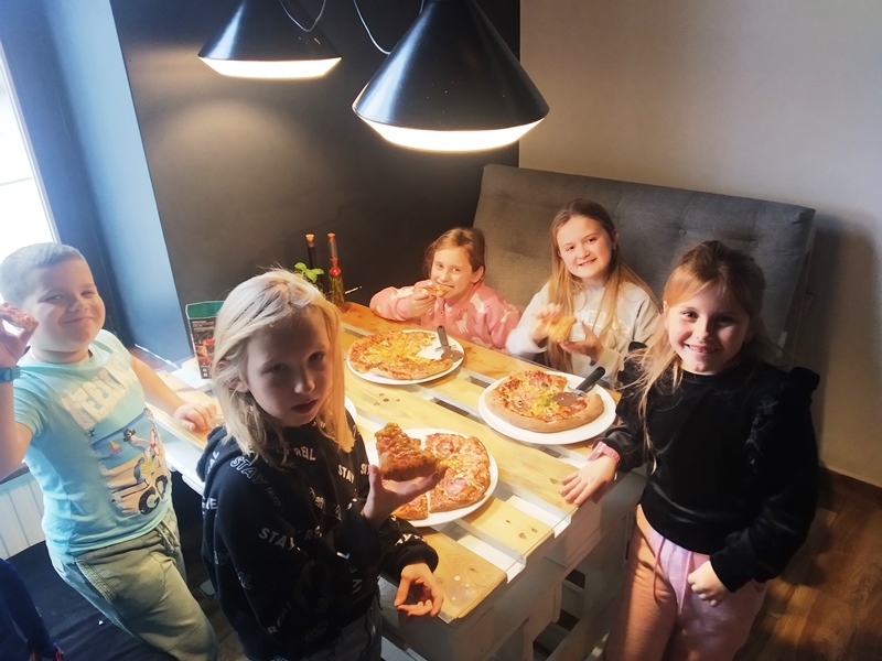 W poniedziałek 14 listopada 2022r. uczniowie klas drugich uczestniczyli w warsztatach robienia pizzy. Pizza to bez wątpienia jeden z największych przysmaków. Wie o tym choćby właściciel pizzerii ,,Mr Jerry"- pan Jerzy Florek, który zaprosił dzieci na warsztaty kulinarne. Na mini warsztatach kulinarnych, pod okiem pana Jerzego oraz jego pracowników, dzieci zgłębiały tajniki kuchni włoskiej. Dowiedziały się, z czego powstaje ciasto na pizzę i jak odpowiednio dobierać składniki, aby pizza była smaczna. Uczyły się samodzielnie robić pizzę . Do dyspozycji miały wiele składników, które ułożyły na cieście. Mali kucharze byli zachwyceni. Doskonale poradzili sobie z zadaniem. Przygotowane przez dzieci pizze trafiły do pieca, a następnie do degustacji. Większa część z każdej pizzy została zapakowana i zabrana przez dzieci do domu, aby podzielić się z najbliższymi. Przyszli adepci sztuki kulinarnej otrzymali również słodką niespodziankę w postaci lemoniady oraz cukierków.