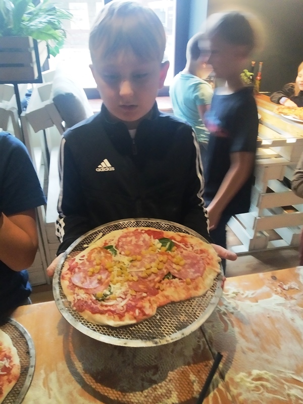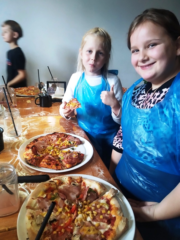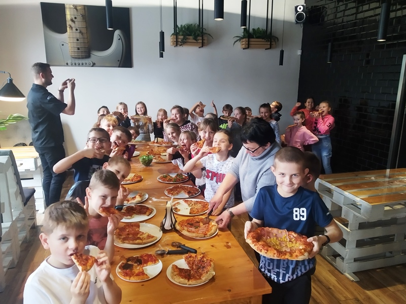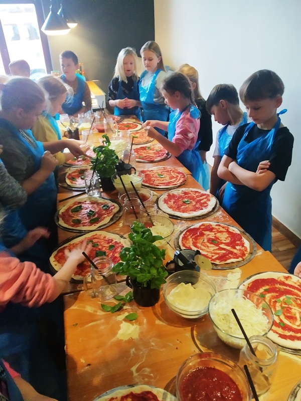 Klasy drugie na warsztatach kulinarnych robienia pizzy w restauracji Mr Jerry