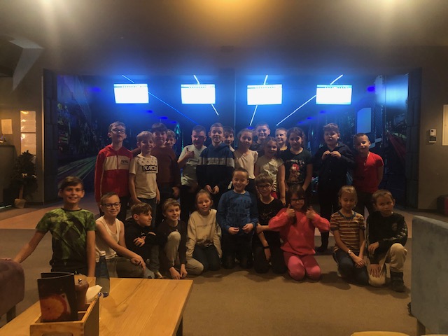W tym roku uczniowie klasy 2a i 2b oraz klasy 3, w prezencie mikołajkowym otrzymały zaproszenie do Kręgielni w Gołkowicach. 8 grudnia 2022 r. spędzili na wspaniałej zabawie dwie godziny. Zgodnie rywalizowali ze sobą. Nie zniechęcali się porażkami. Pomagali sobie wzajemnie w doborze odpowiedniej kuli. Cieszyli się z każdego zdobytego punktu. Bardzo byli też zadowoleni z poczęstunku w postaci włoskiej pizzy. Był to mile spędzony czas. Wszyscy wrócili bardzo zadowoleni.