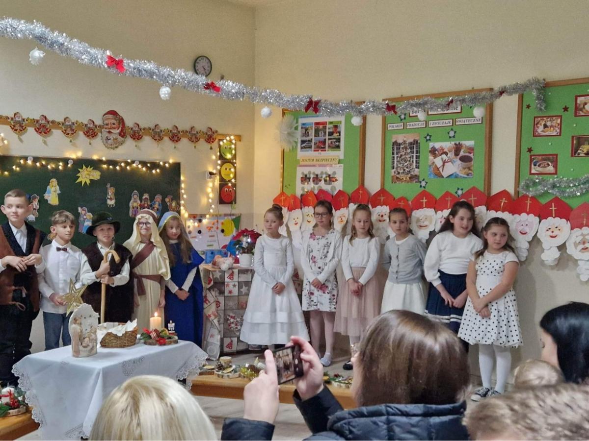21 grudnia 2022 roku uczniowie klasy III zaprosili swoich rodziców na klasowe spotkanie opłatkowe. Dzieci przygotowały Jasełka oraz pięknie śpiewały kolędy i pastorałki, które wszystkich wprowadziły w świąteczny nastrój. Spotkanie było bardzo uroczyste. Dzieci pięknie się zaprezentowały. Na zakończenie wszyscy połamali się opłatkiem składając sobie serdeczne, świąteczne życzenia.