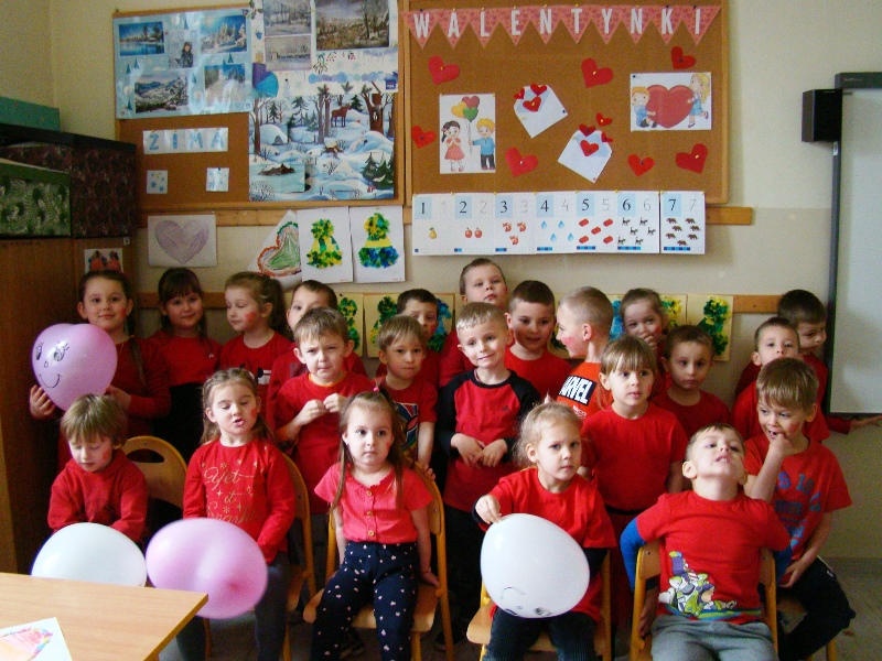 14 lutego w oddziałach przedszkolnych naszej szkoły dzieci obchodziły walentynki. W tym dniu wszyscy ubraliśmy się na czerwono, a dzień ten był wypełniony licznymi atrakcjami. Dzieci dowiedziały się kim był św. Walenty i poznały tradycję obchodzenia tego święta w Polsce i innych krajach. Rozmawiały i tym, jak ważne jest serce w naszym organizmie, oraz co to jest MIŁOŚĆ, jak i do kogo ją okazujemy. Dzieci doskonaliły umiejętność mówienia o swoich uczuciach, dowiedziały się, że nawet małe rzeczy i uczynki mogą sprawić drugiej osobie wiele radości. Każde dziecko własnoręcznie wykonało walentynkę dla bliskiej mu osoby. Nie zabrakło również zabaw muzyczno-ruchowych z wykorzystaniem balonów w kształcie serca.