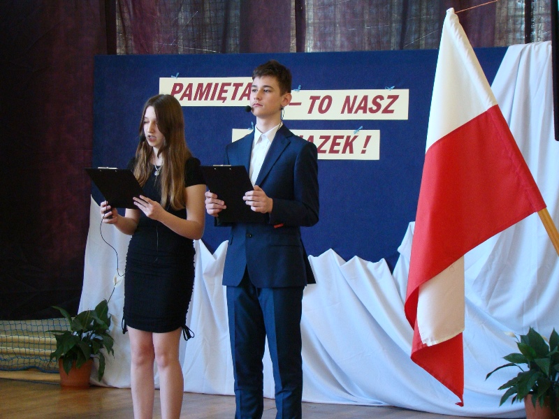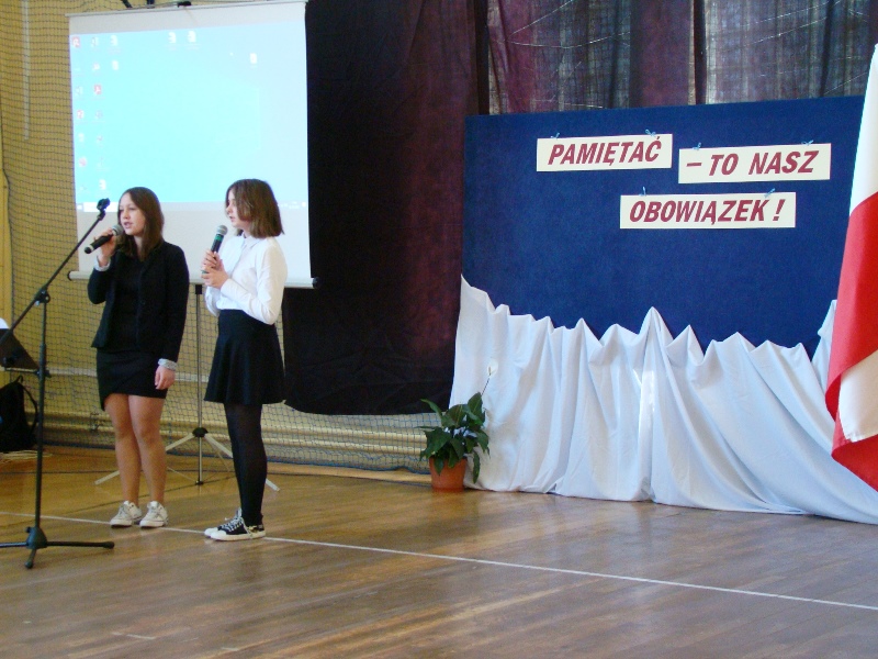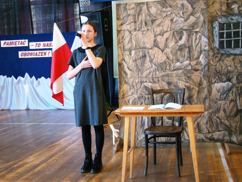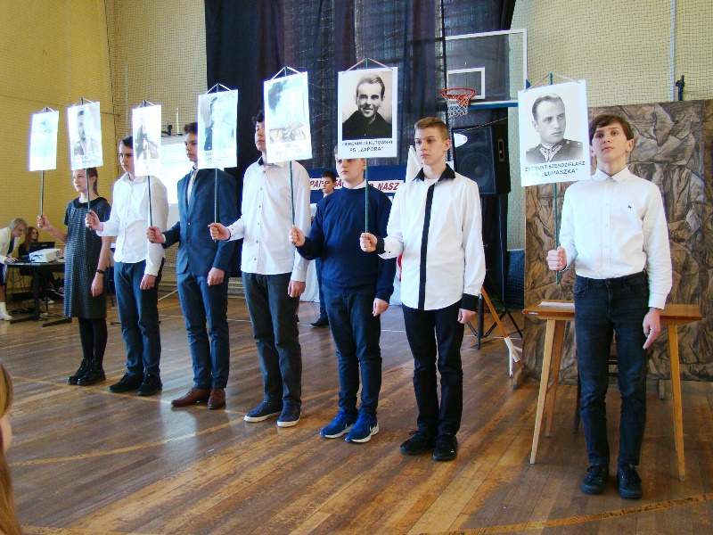 Z okazji Narodowego Dnia „Żołnierzy Wyklętych” w naszej szkole odbył się uroczysty apel przygotowany przez młodzież z klas starszych pod kierunkiem p. Zofii Magdaleny Cieślewicz i p. Iwony Ogorzały. Pod hasłem „Pamiętać – to nasz obowiązek!” zaprezentowano postacie bohaterów antykomunistycznego podziemia, którzy w obronie niepodległego bytu Państwa Polskiego, walcząc o prawo do samostanowienia i urzeczywistnienie dążeń demokratycznych społeczeństwa polskiego, z bronią w ręku, jak i w inny sposób, przeciwstawili się sowieckiej agresji i narzuconemu siłą reżimowi komunistycznemu.