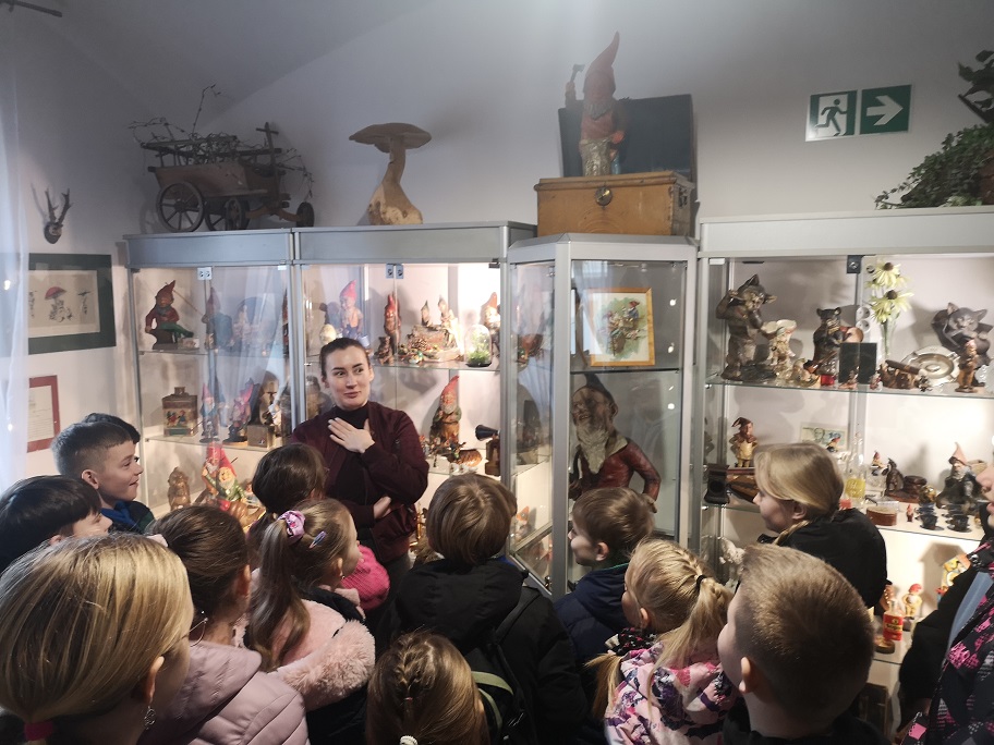 11.03.2023 r. zuchy i harcerze młodsi z naszej drużyny wraz z opiekunami odwiedzili Hufiec ZHP, w którym od niedawna ma siedzibę Muzeum Krasnali. W ramach zwiedzania uczestnicy wyjazdu mieli okazję zobaczyć unikatowe eksponaty pochodzące z prywatnych zbiorów kolekcjonerskich z XIX i XX wieku. Dzieci mogły obejrzeć krasnale wykonane z brązu, drewna, terakoty, porcelany, szkła, złota i srebra w różnych odsłonach. Wszystko zaprezentowane w miłej scenerii, nawiązującej do środowiska występowania małych skrzatów. Czas spędzony w Muzeum był okazją do wysłuchania starego wydania bajki polskiej. Wszyscy byli zaciekawieni historiami związanymi ze starymi bajkami i legendami. Zbiórka z krasnalami była bardzo udana i z pewnością na długo zostanie w pamięci dzieci.