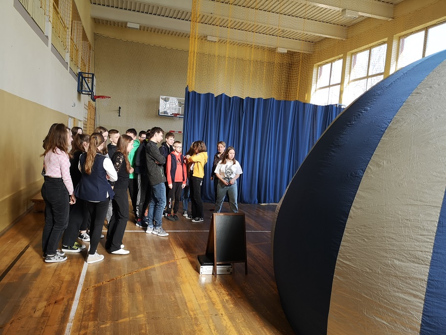 17.03.2023 w szkole gościło Molekularium, czyli mobilna kopuła umożliwiająca projekcję filmów w technologii 360°. Uczniowie mieli okazję obejrzeć w niej filmy dotyczące kosmosu i życia na Ziemi. Seans w molekularium rozbudza zainteresowanie zjawiskami otaczającego nas świata oraz rozbudza ciekawość poznawczą uczniów. Dzisiejsze spotkanie było dla dzieci niezapomnianym wydarzeniem.