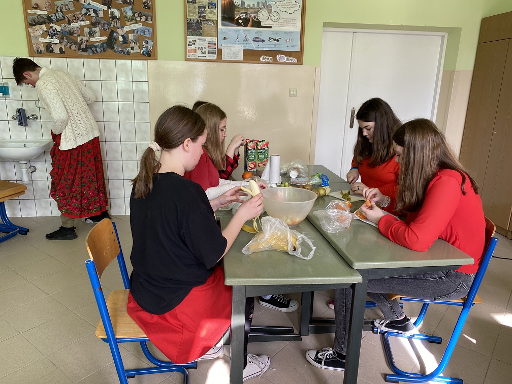 21 marca 2023 r. uczniowie klas IV- VIII świętowali I Dzień Wiosny. Aura za oknem lekko nie dopisała, ale humory i ożywienie jak najbardziej wiosenne objęło wszystkich obecnych w szkole. Każda z klas ubrała się tradycyjnie w kolorach wylosowanych kilka dni wcześniej, co bardzo ubarwiło obraz dzieci i młodzieży w czasie przerw. Uczniowie przygotowali również ciekawe i śmieszne skecze pokazujące różne aspekty życia kiedyś i dzisiaj w Przysietnicy w ramach przygotowań do obchodów 750 – lecia lokacji naszej miejscowości. Do przygotowań scenografii i scenariuszy aktywnie włączyli się zarówno uczniowie jak i rodzice, zwłaszcza klas młodszych, za co szczególnie dziękujemy wszystkim zaangażowanym. Prezentacje klas cieszyły się dużym zainteresowaniem, a wspólna zabawa była wspaniałym dopełnieniem dzisiejszego święta. Po wspólnej zabawie każda z klas przygotowała w ramach projektu Liderzy Promocji Zdrowia zdrowe sałatki i kanapki, które wzmocniły uczniów i urozmaiciły codzienny jadłospis wielu z nich. Każda z klas przygotowała również plakaty i prace plastyczne promujące zdrowy styl życia. Dzień był bardzo udany i teraz tylko z niecierpliwością zostało nam czekać nadejścia prawdziwej wiosny.